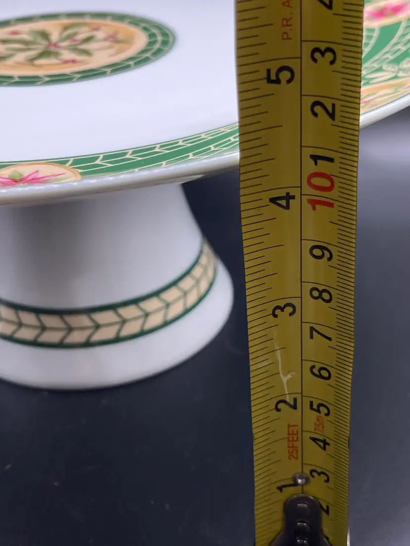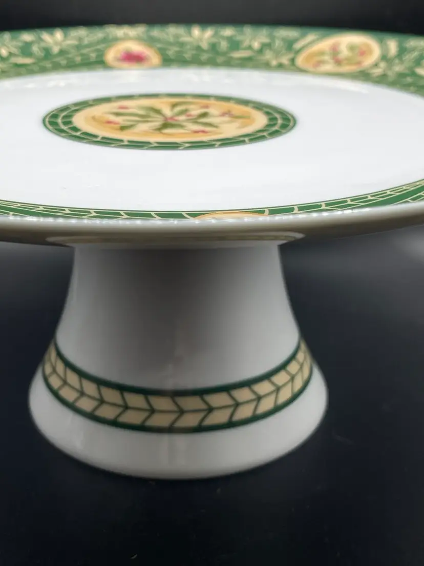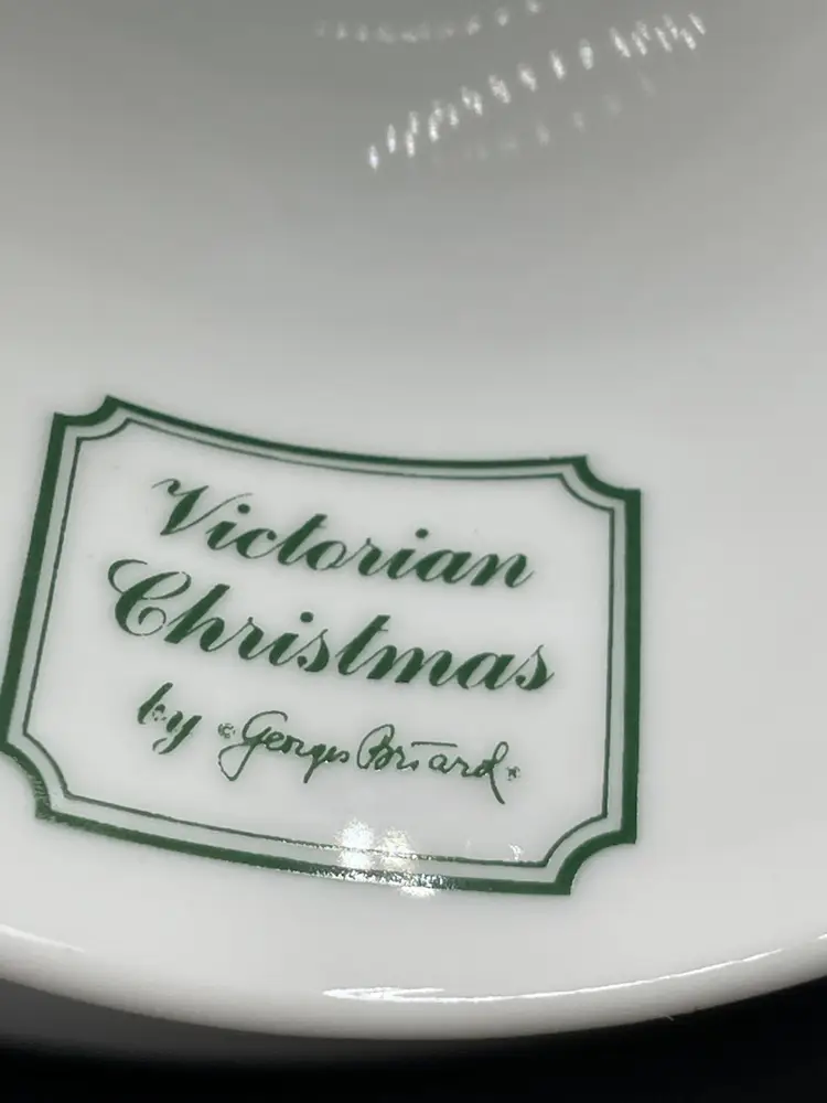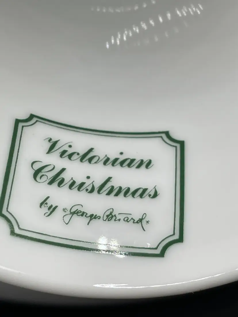 Vintage Georges Briard “Victorian Christmas” footed cake/dessert stand is made of bone China with a Christmas pattern. Round, stands at 4.5 inches tall and diameter of 10.5 inches. Has a printed back stamp and is perfect for holiday gatherings!