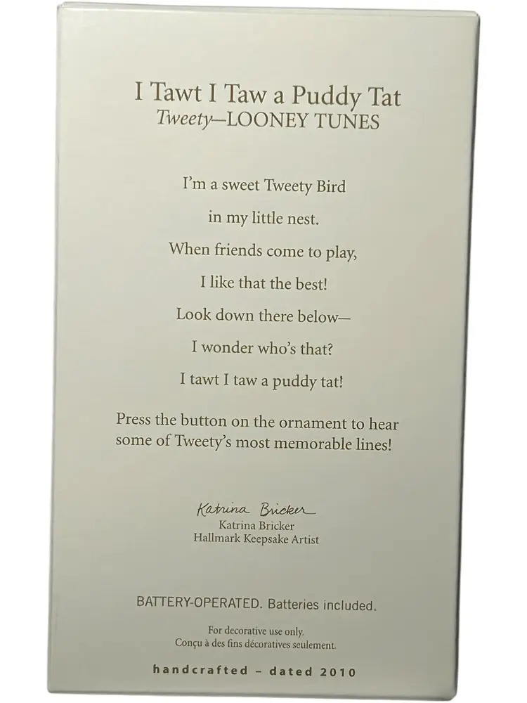 Hallmark Ornament Tweety I Tawt I Taw A Puddy Tat Looney Tunes Magic NOB