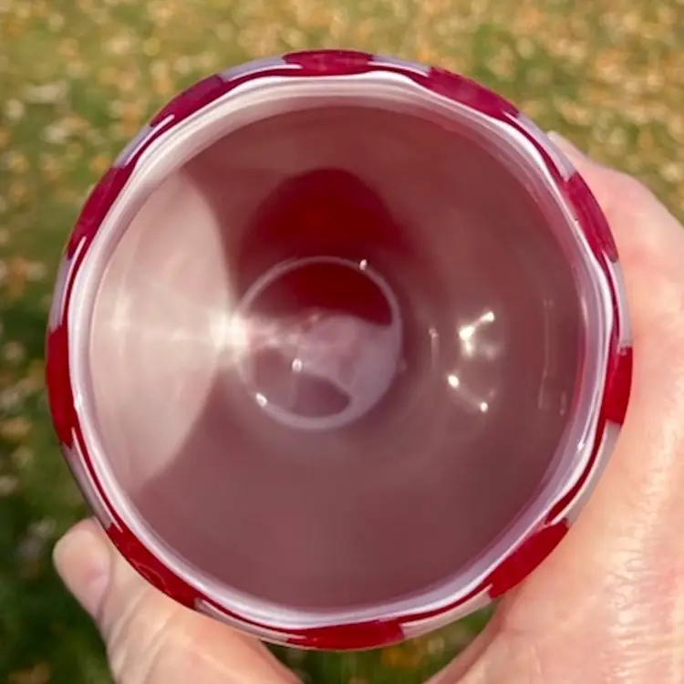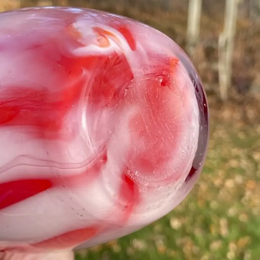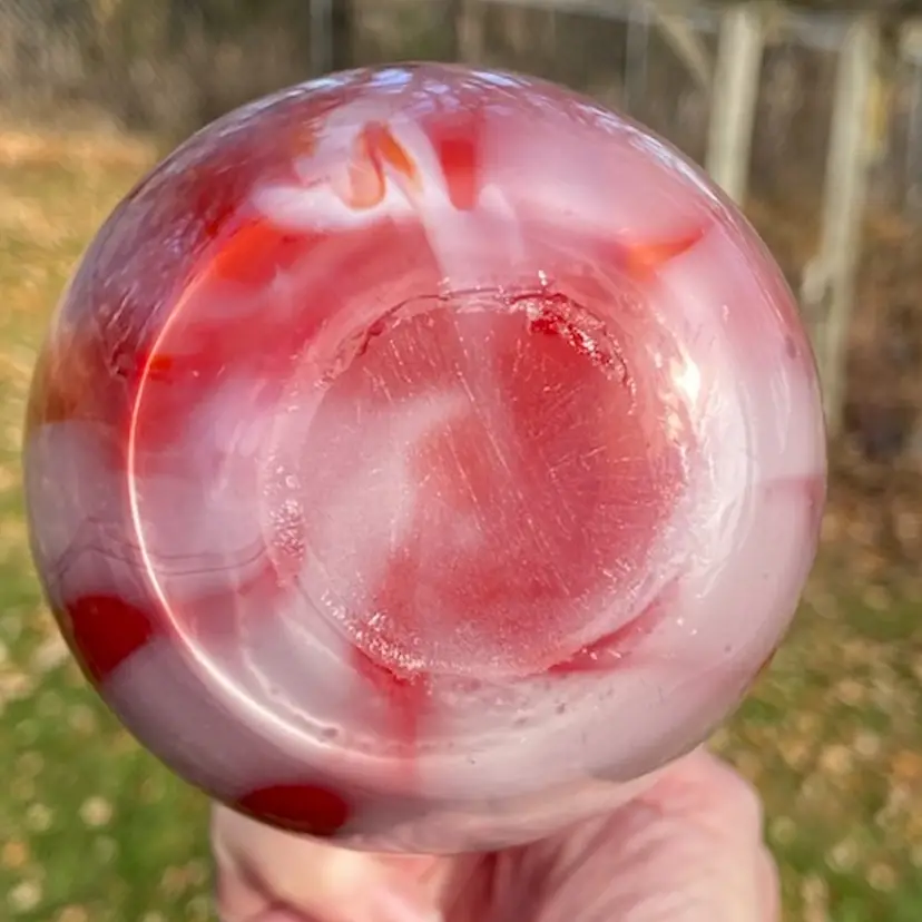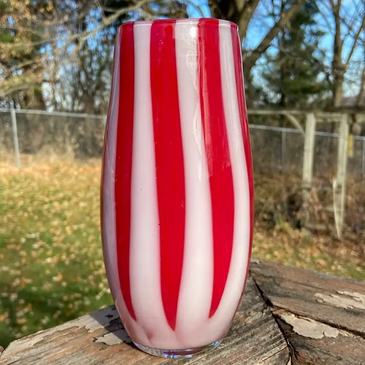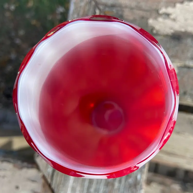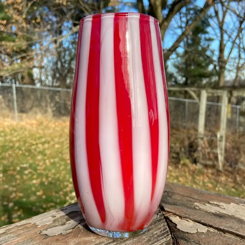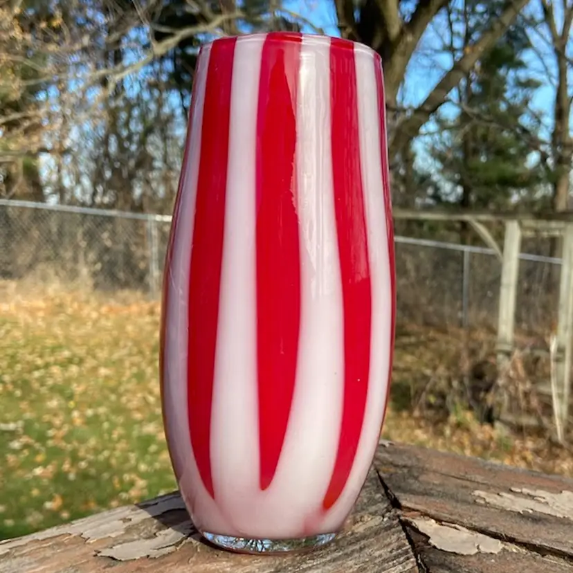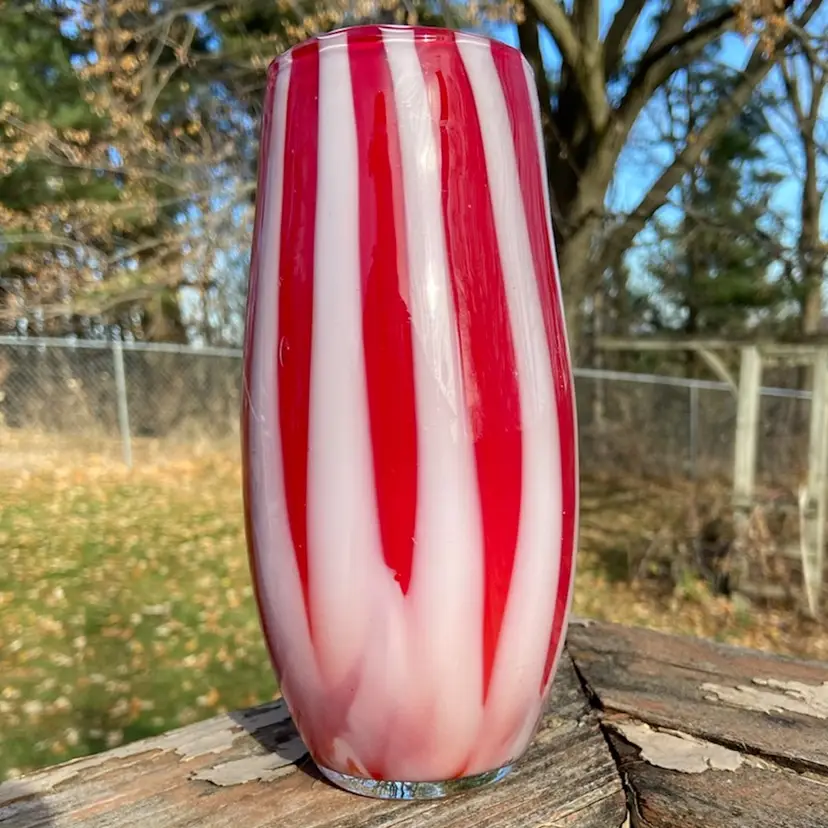 Approx: 7”h x 3”w (opening 1”w). Preowned condition. No chips or cracks. Some bubbles in glass. Some surface scratches. Small area of roughness on pontil. See images as part of description.
