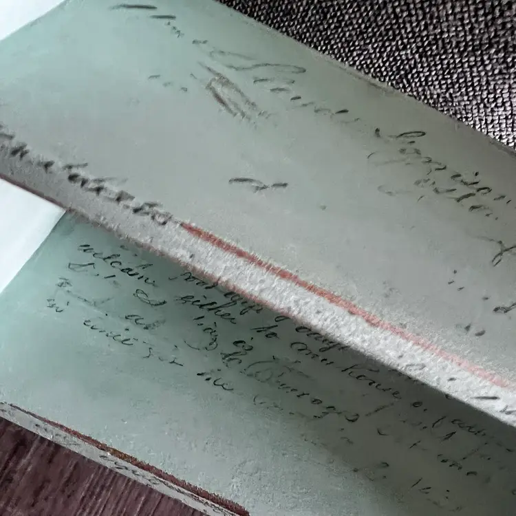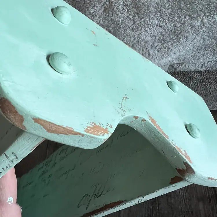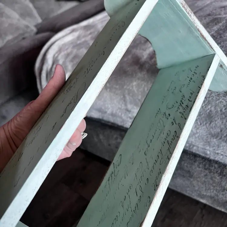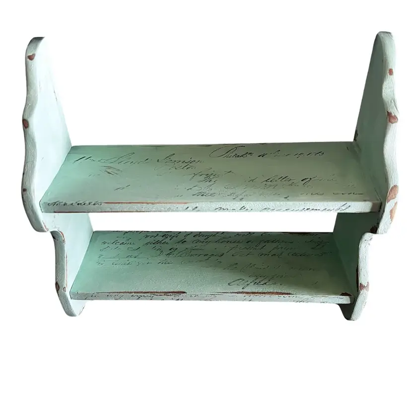 Hand painted Vintage Shelf Distressed Upcycled Mint Farmhouse Cottagecore Stamped Made By Me Drnksuzy OOAK Original