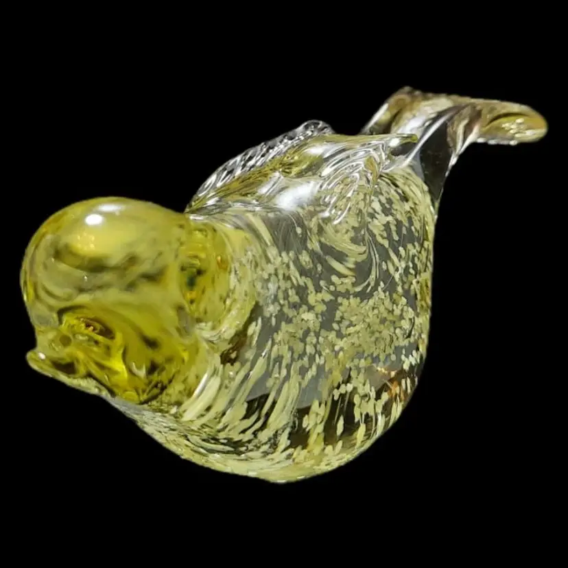 This exquisite vintage glass bird figurine exudes timeless charm. Its delicate craftsmanship and glowing effect under black light make it a unique collectible.