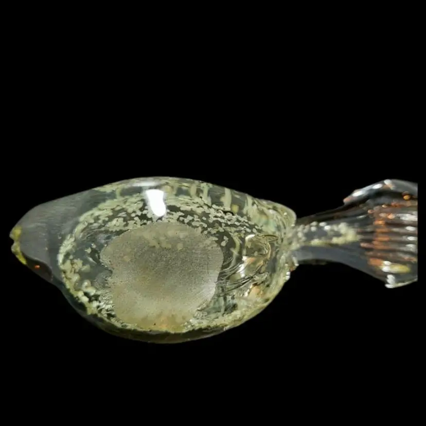 • Made of durable glass with intricate detailing • Features a luminous glow under black light • Elegant design with unique speckled accents • Perfect for display or collection