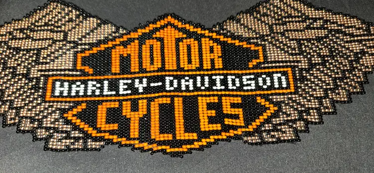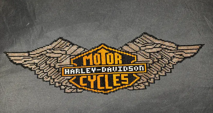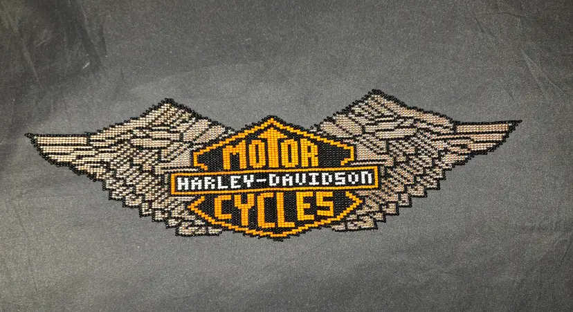 Handmade Beaded Harley Davidson Patch it is a sew on style. Measures 12.5" long 3.75" high Very well made.
