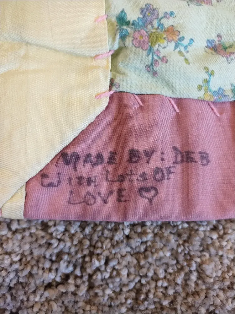 Adorable little blanket for any baby! No damage noted. Signed by Deb, measures 40x50 inches.