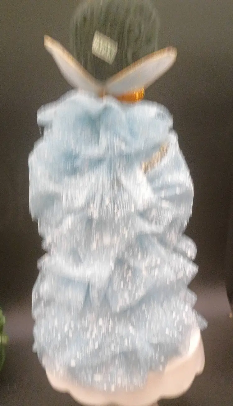 This is a handmade vintage Angel in a ruffled blue gown. The angel head, the dove and cone used for this angel are vintage materials. The blue material used for the dress is not vintage.