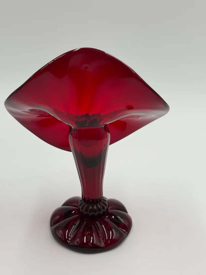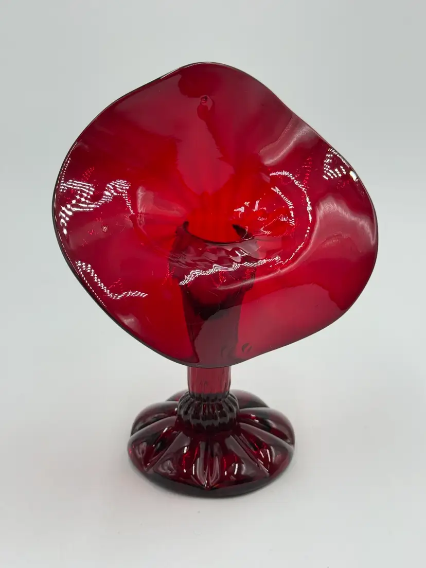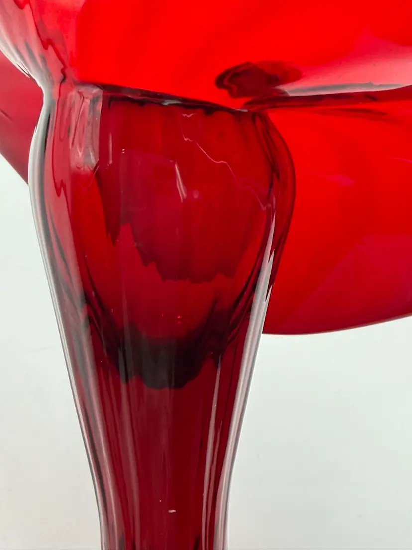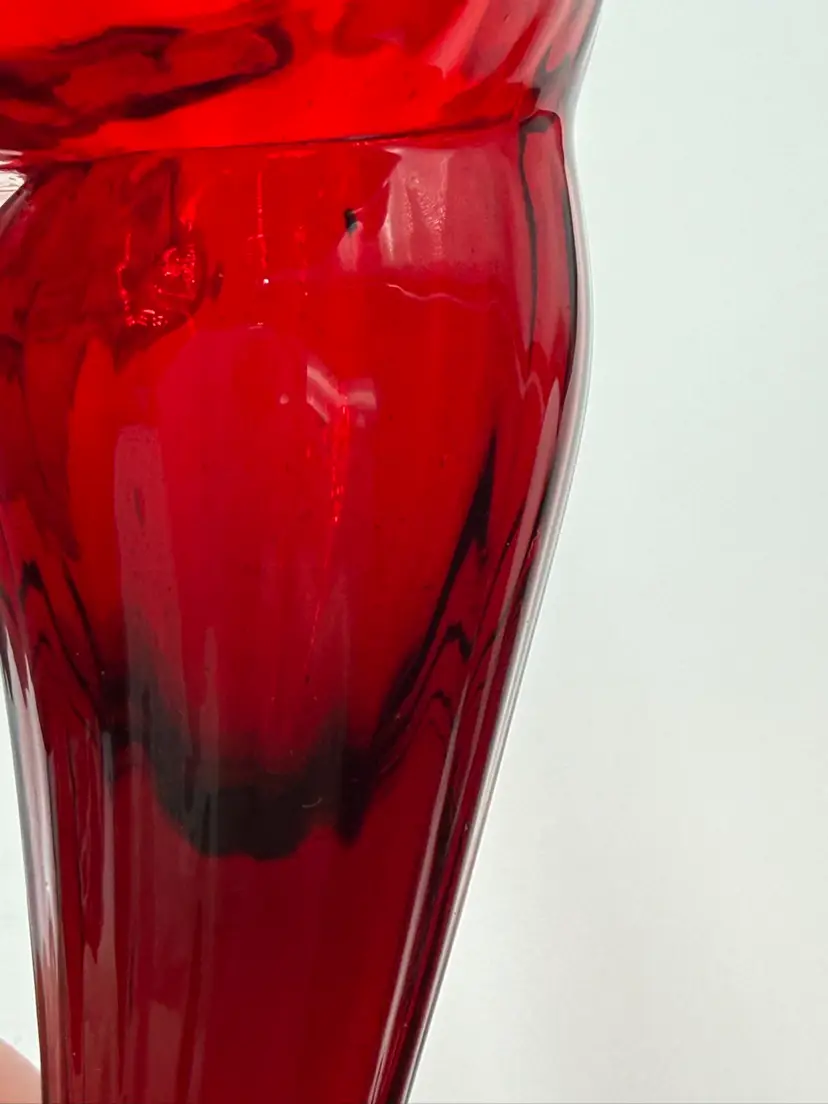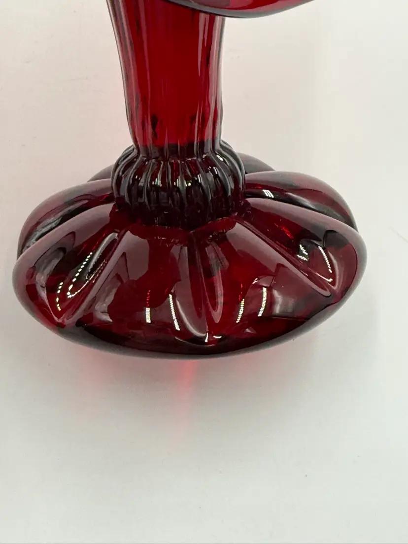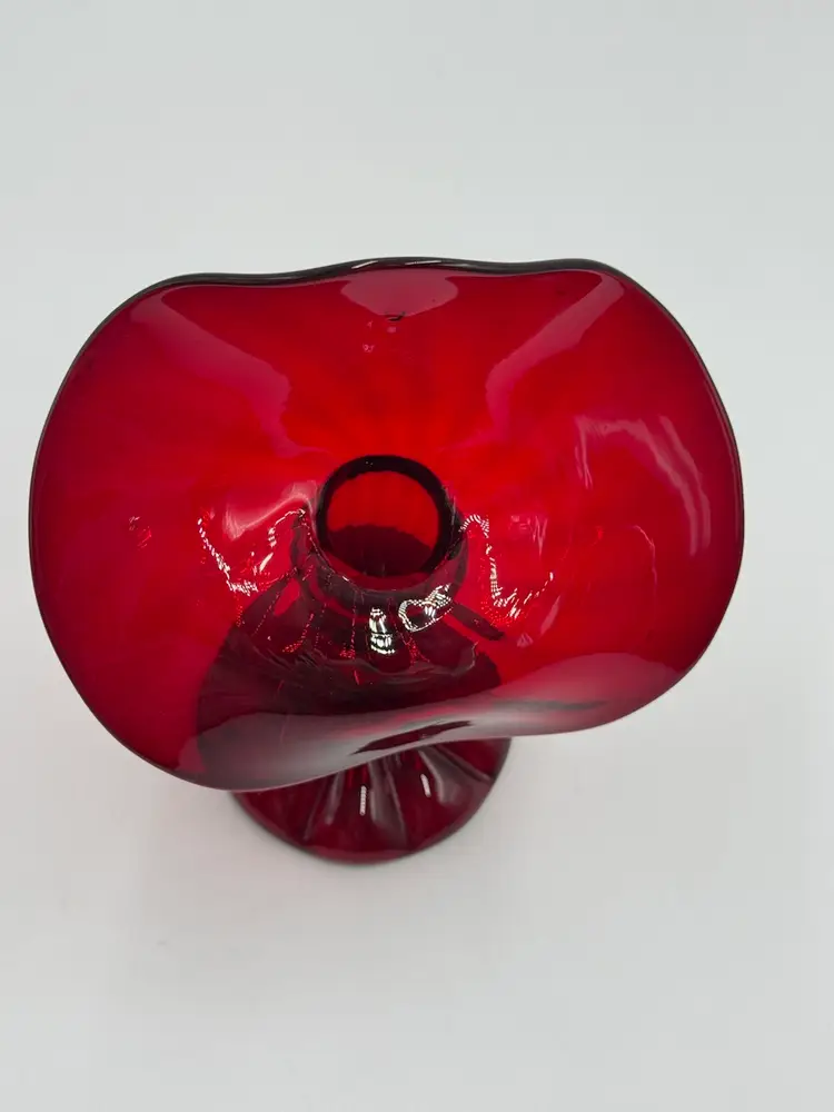 In good condition. Does not have any chips or cracks. Has a rough pontil mark on the bottom. Measures 6 7/8 inches tall and 5 3/8 inches wide. The mouth opening on the vase is only about 1 1/2 inches deep.