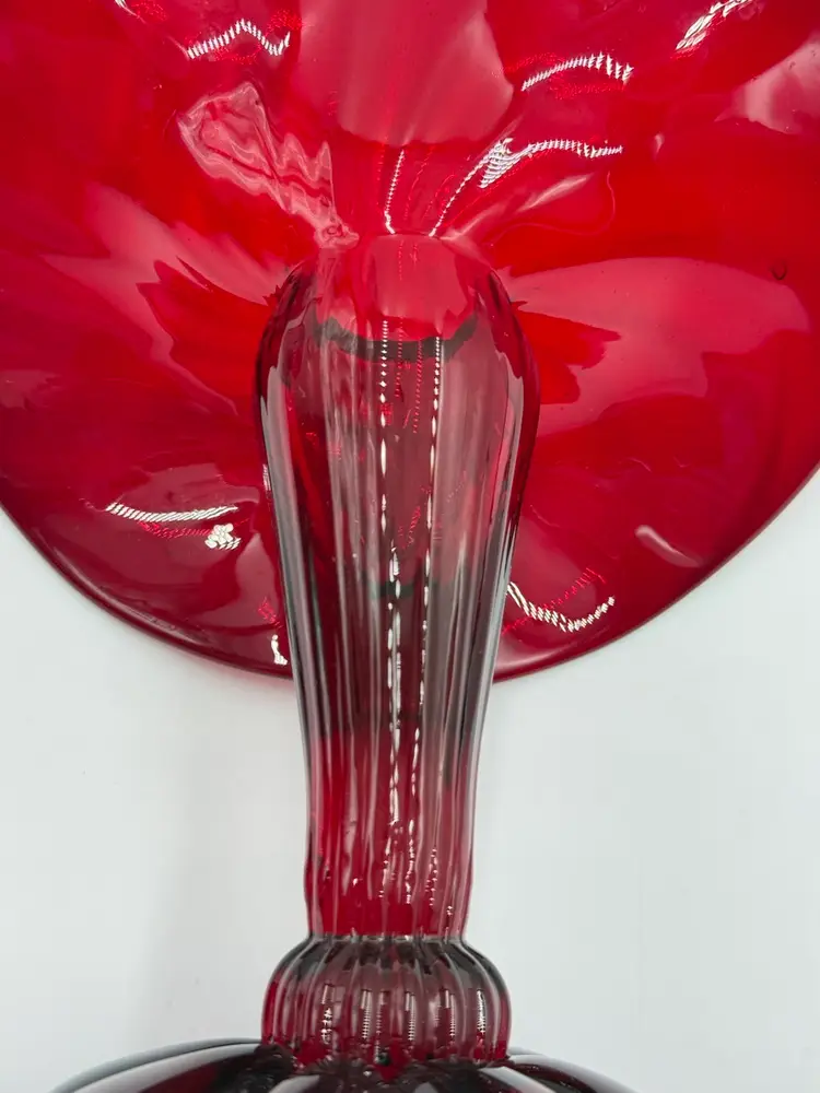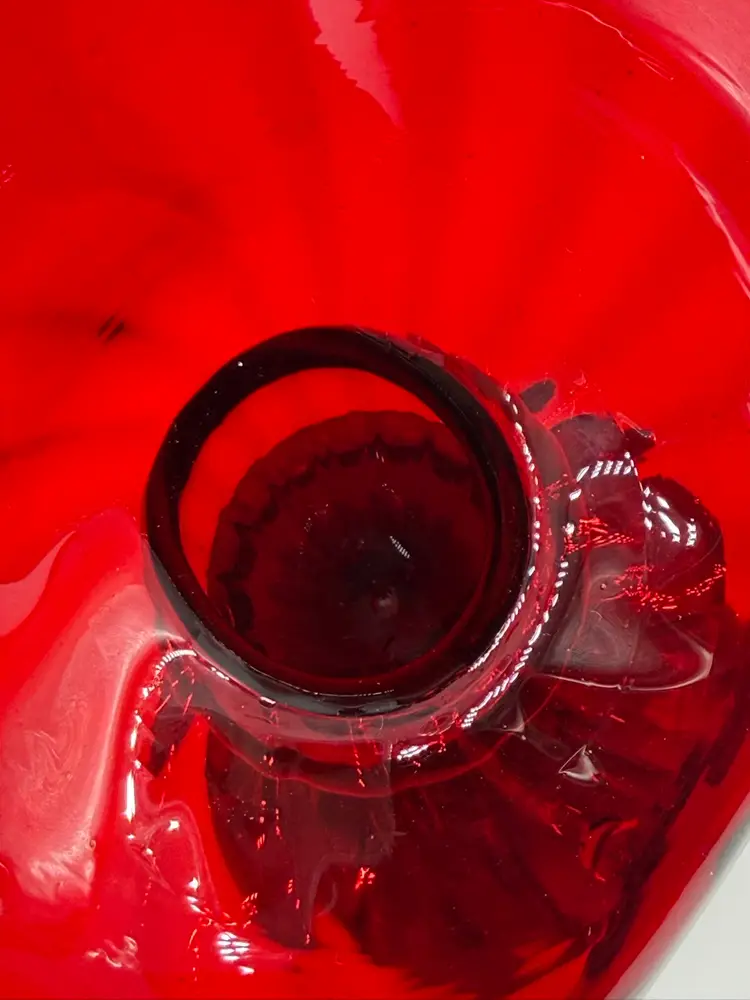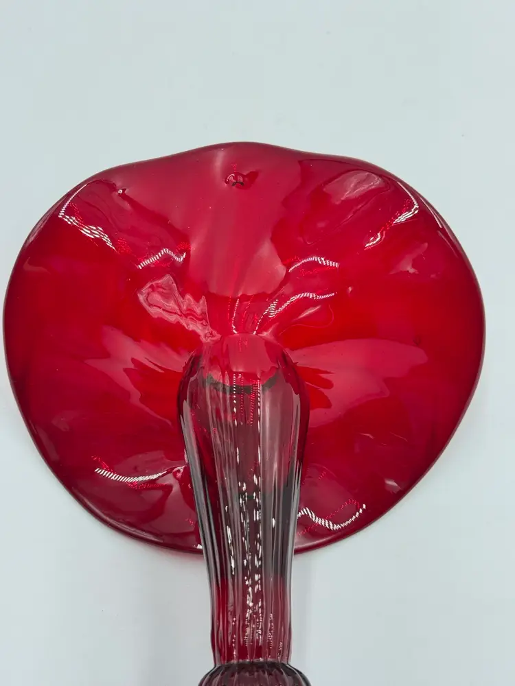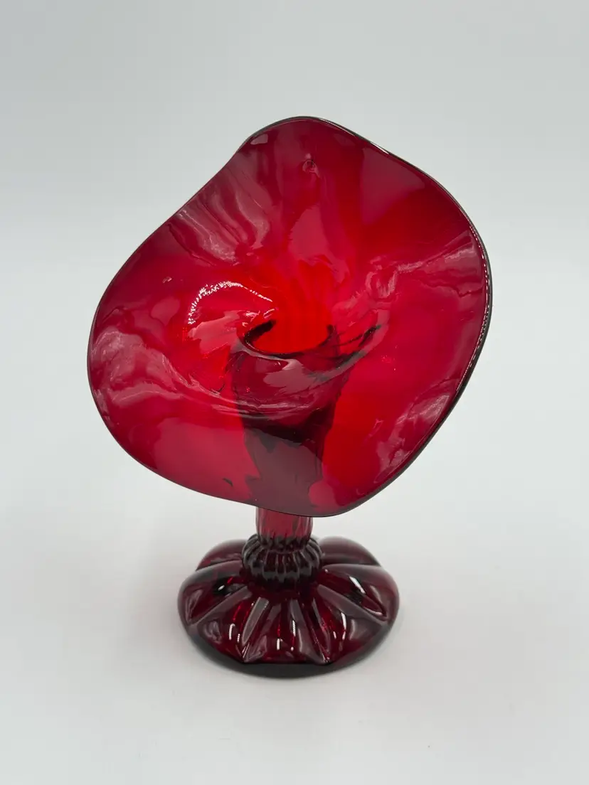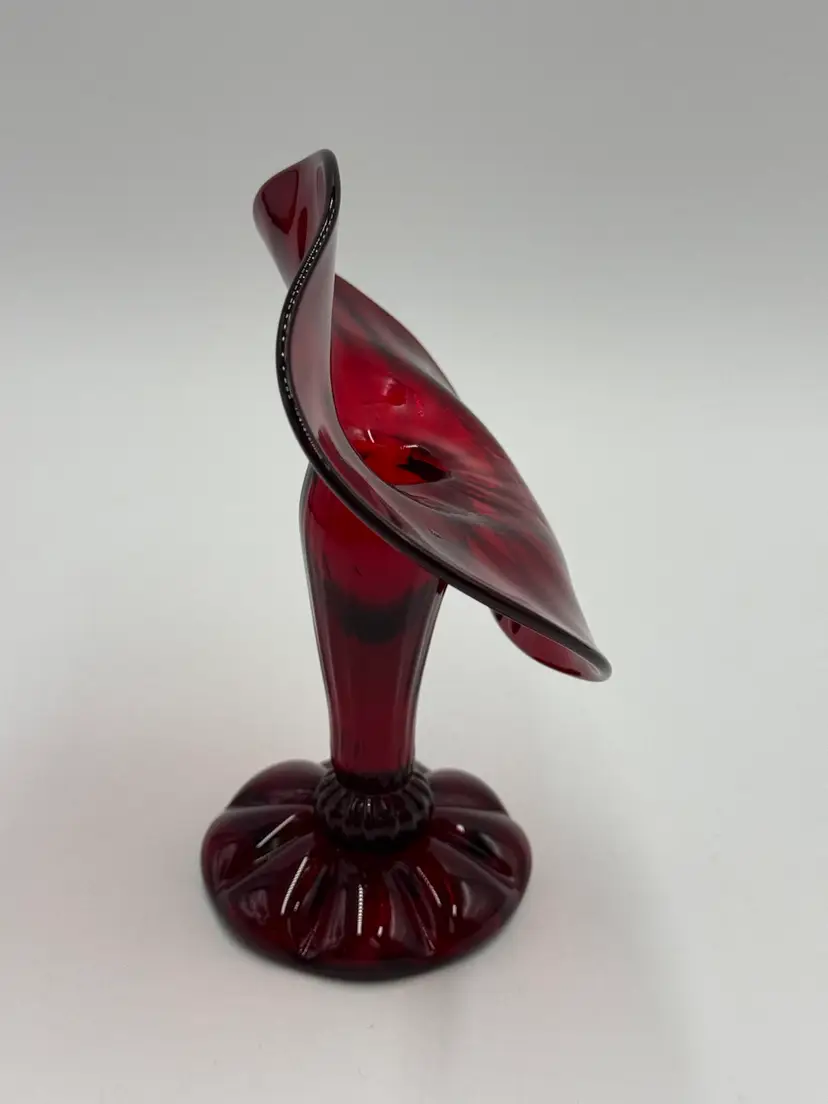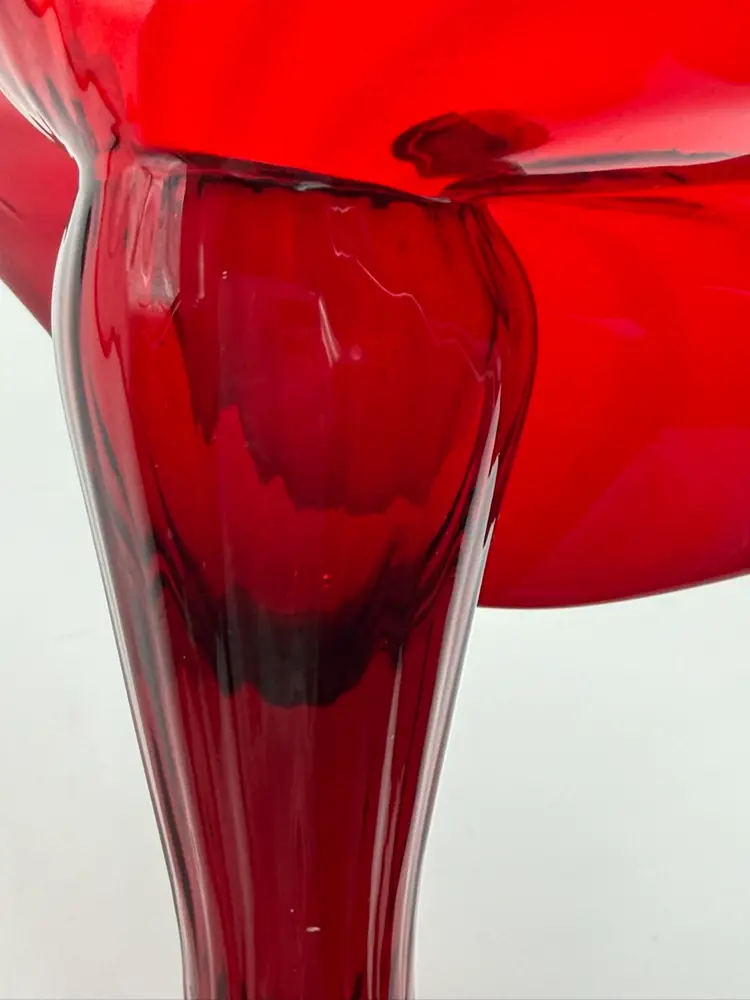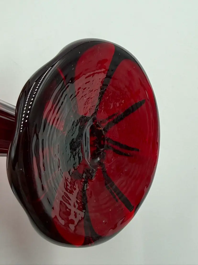 In good condition. Does not have any chips or cracks. Has a rough pontil mark on the bottom. Measures 6 7/8 inches tall and 5 3/8 inches wide. The mouth opening on the vase is only about 1 1/2 inches deep.