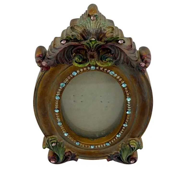 Jeweled Frame Rhinestones Gold Green Picture Size 2x3"