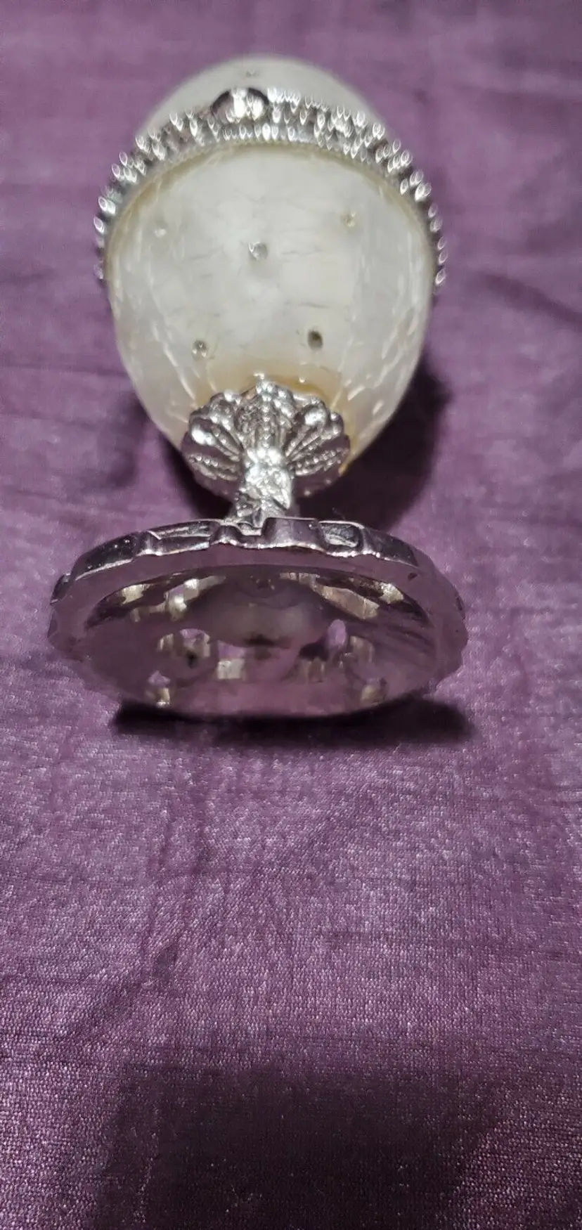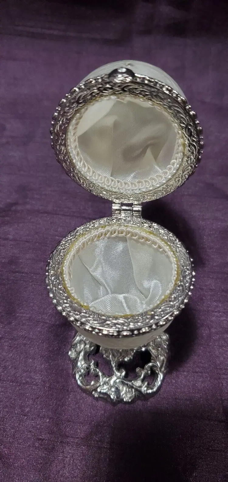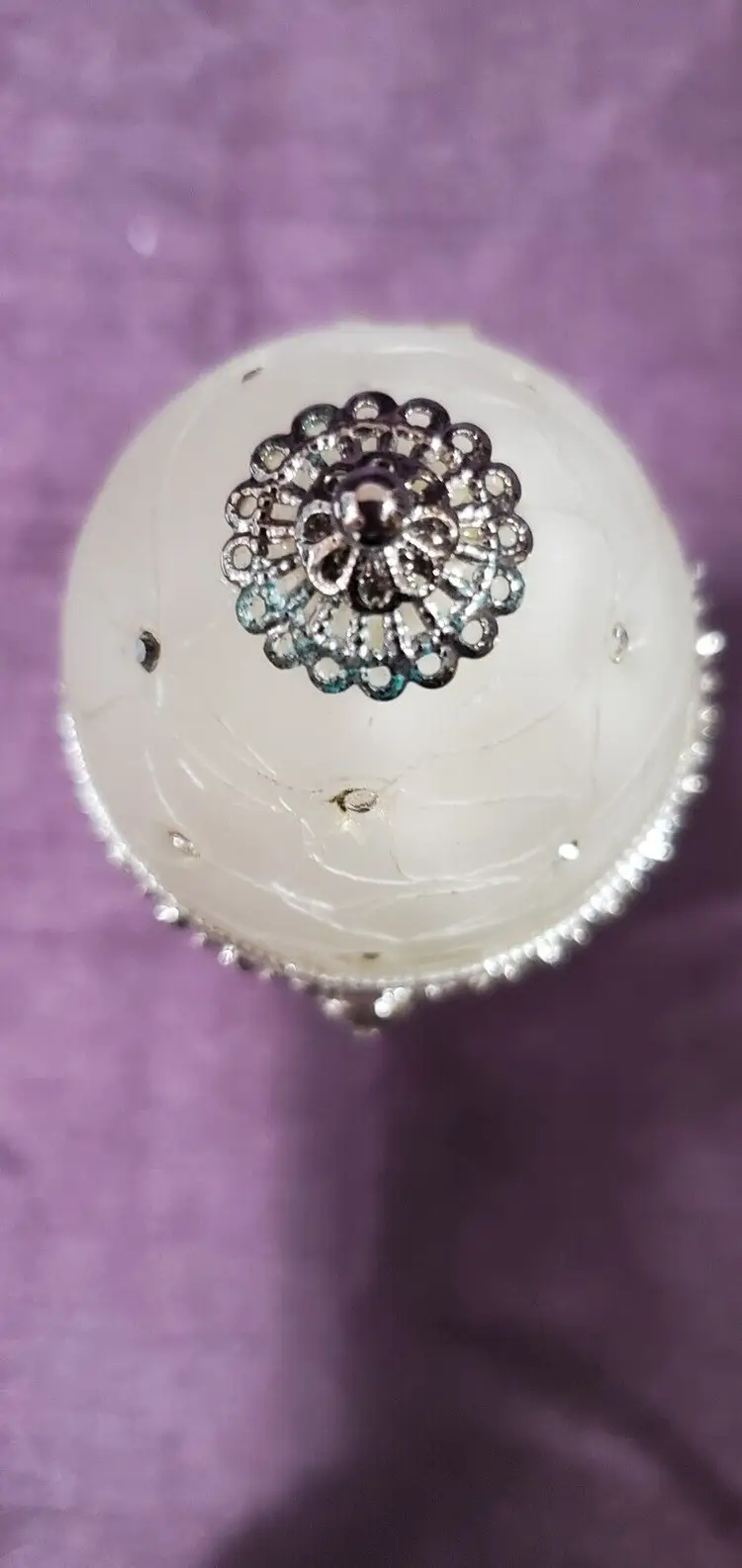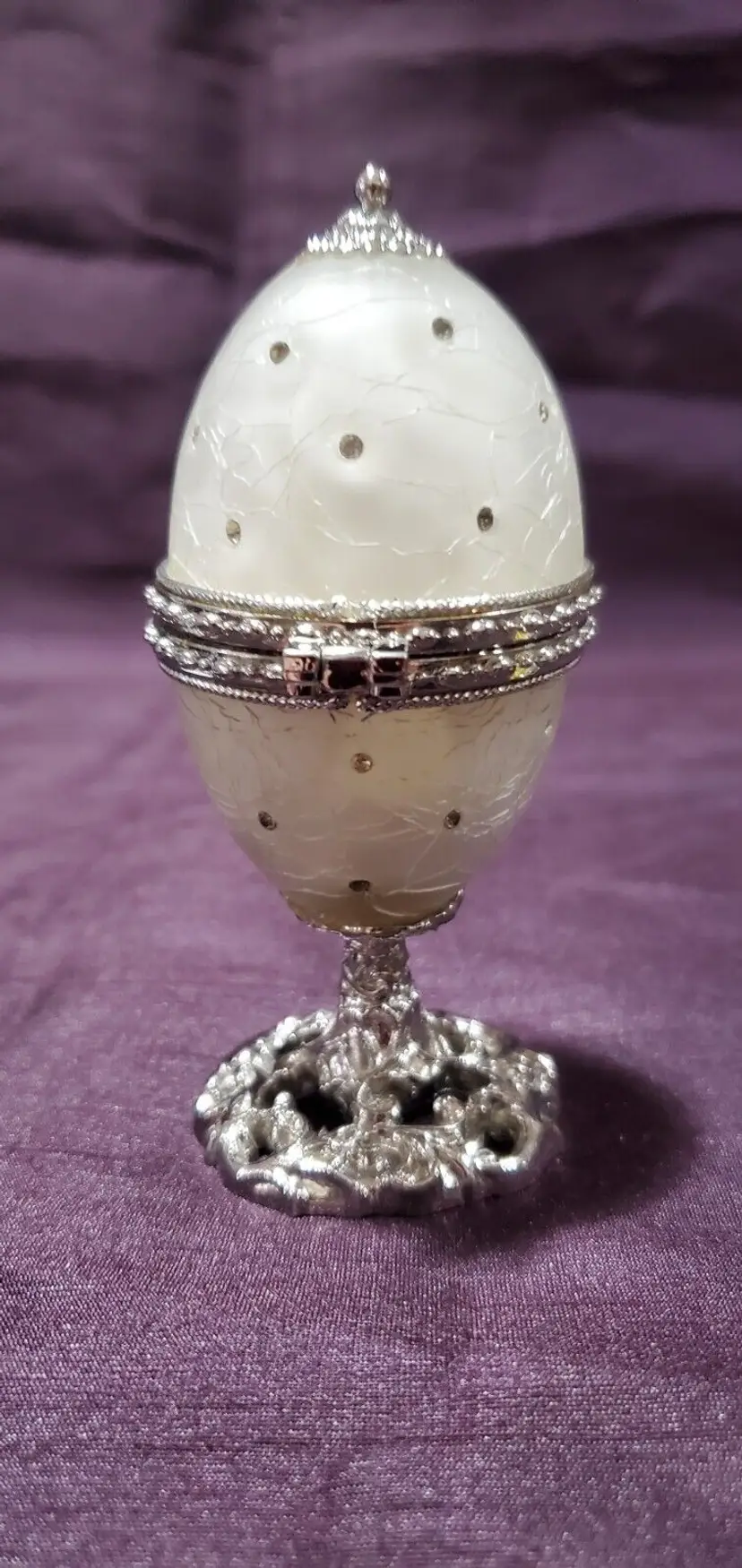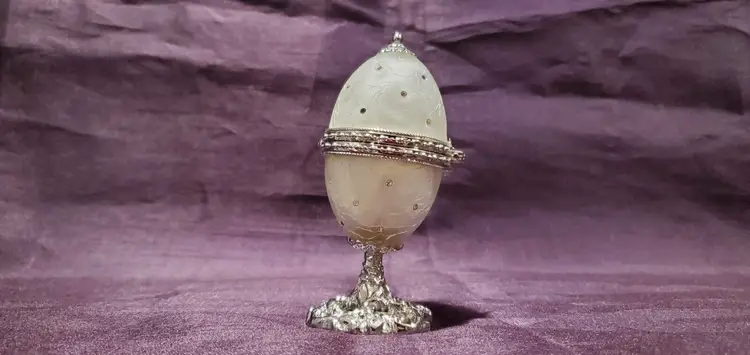 Jeweled Pearl White Glass Keepsake Egg Trinket Box