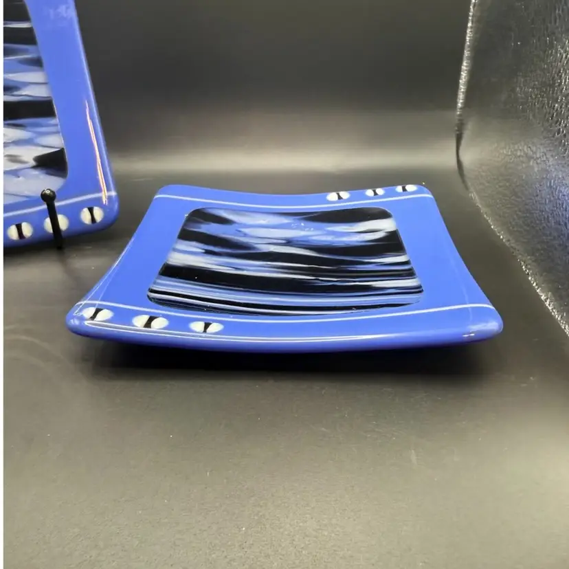 John Turner is a recognized American artist known for his work in fused and blown glass. His pieces from the mid-20th century often feature bold colors and abstract designs, reflecting the artistic trends of the post-war era. The dates 7-57 and 7-59 indicate these pieces were created in July of 1957 and 1959, respectively, placing them firmly within a significant period of studio glass development.