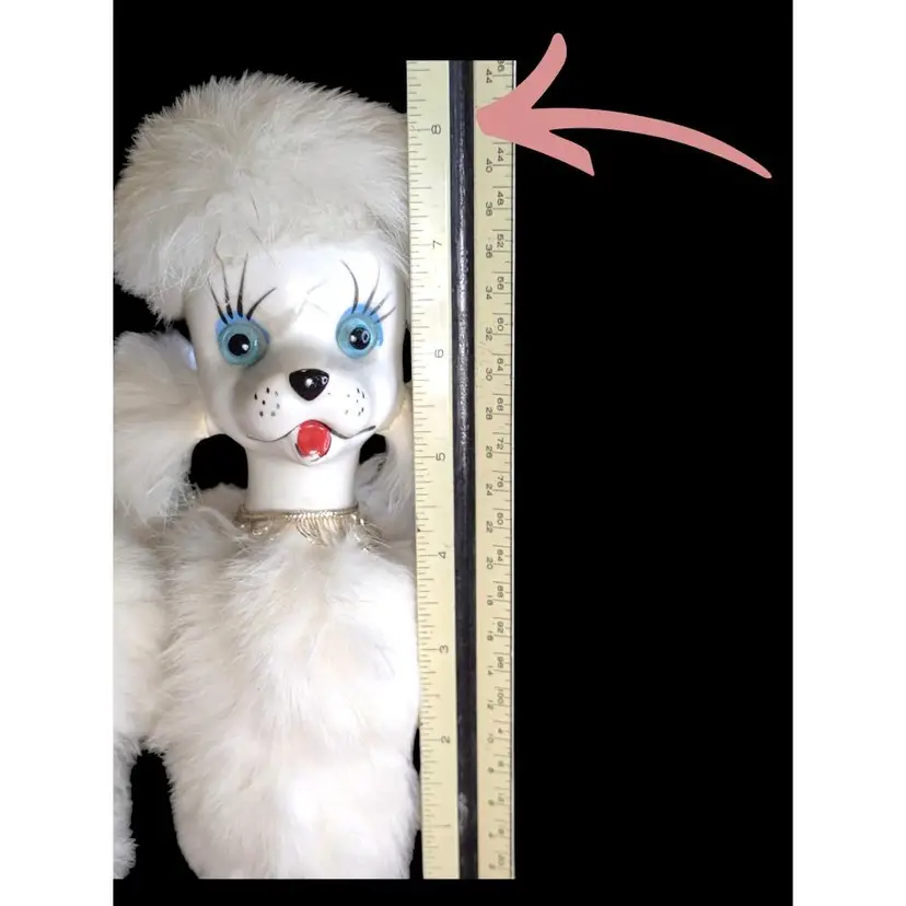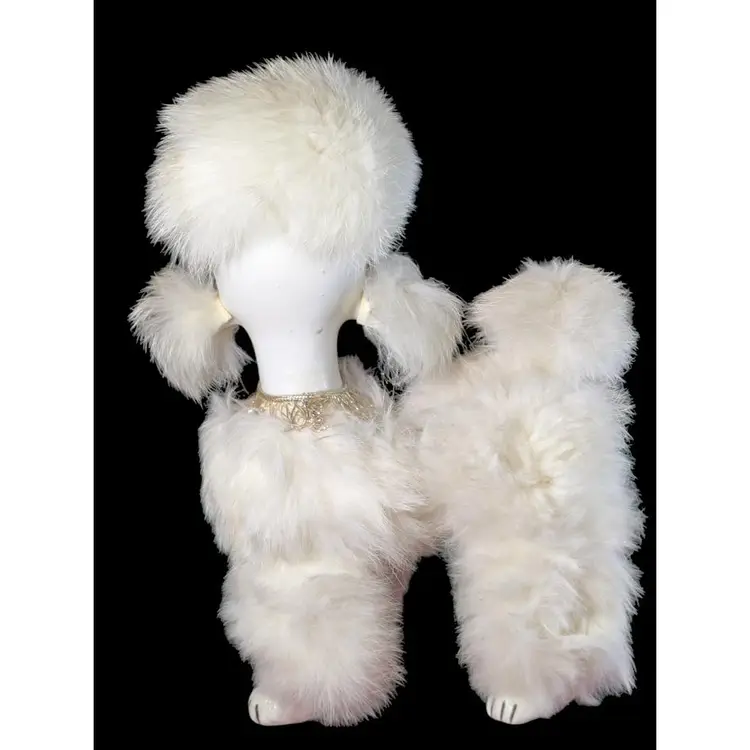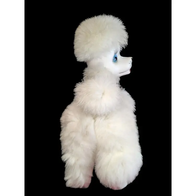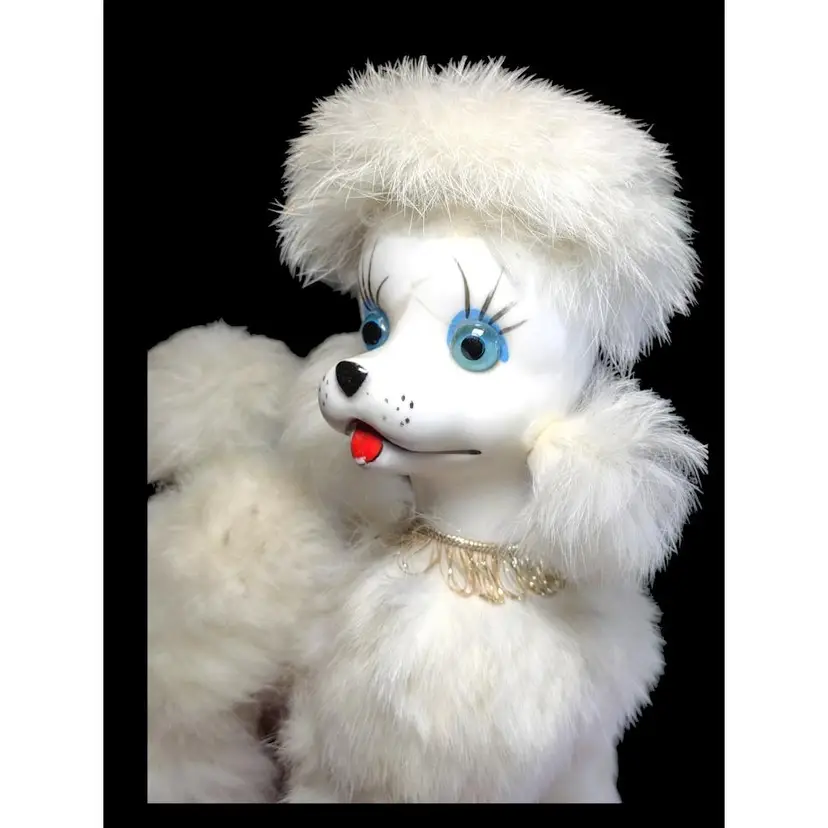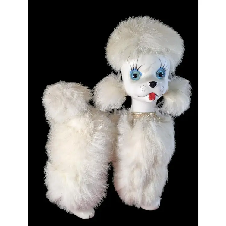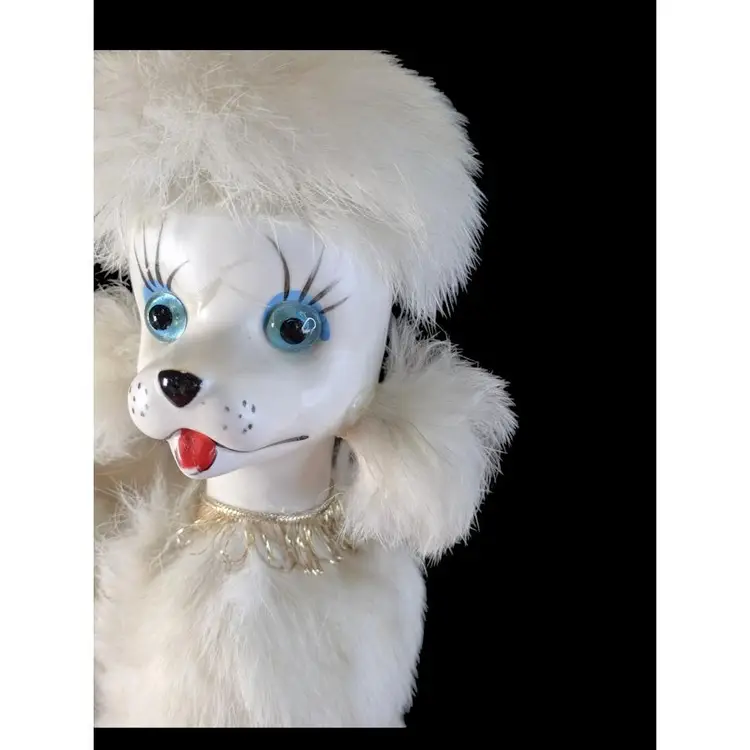 Kitschy White Furry Soft Ceramic Poodle Standing Blue Eyes-Norcrest