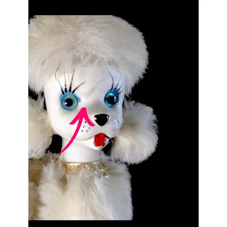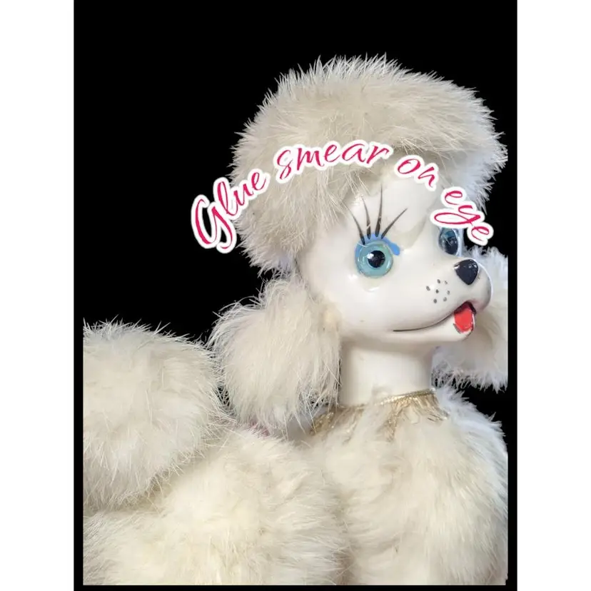 This Mid Century ceramic poodle is in great condition, other than glue around eye! (see pictures) I did not attempt to clean it- not sure if I could!