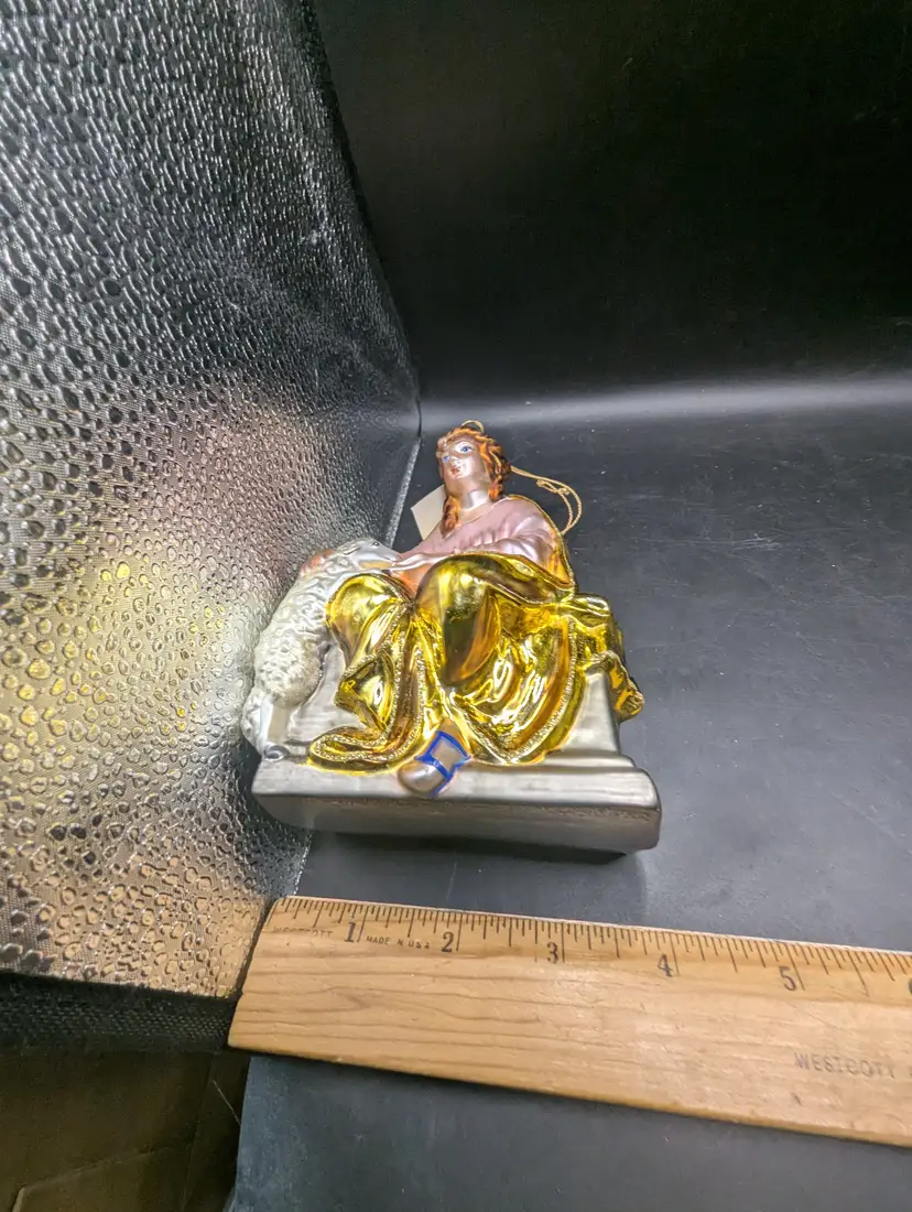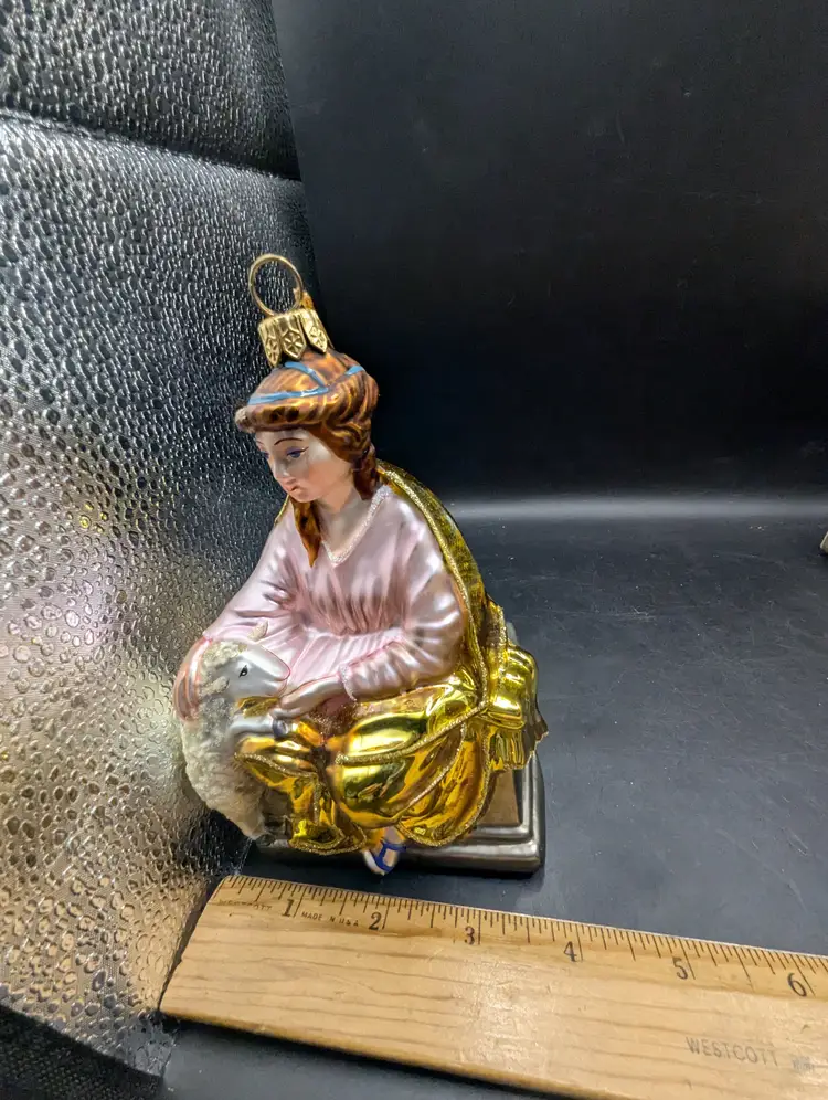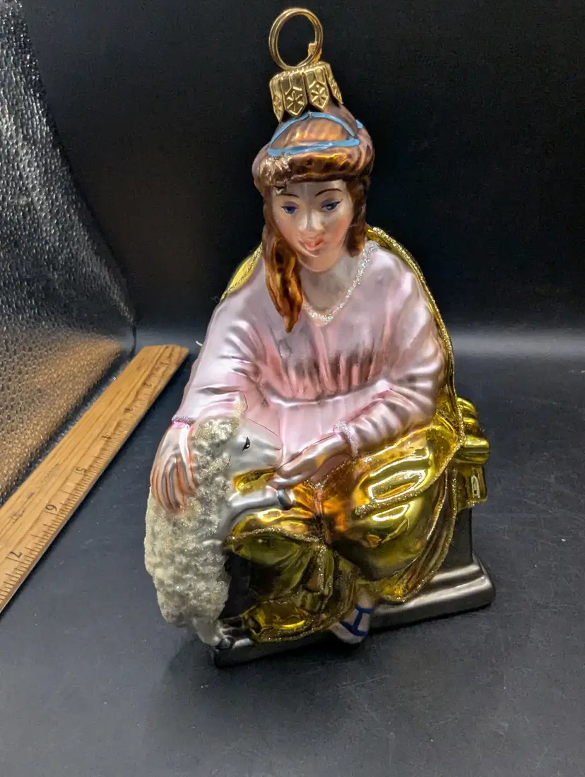 This is a lovely Kurt Adler Polonaise Mercury Glass Nativity Ornament Meekness As Is Repaired. She had a small hole in her head in her braid of hair in the front as seen in last picture. She also has some wear on the gold of her robe on the back. But she is still in very nice condition. Please see all pictures for condition and measurements.