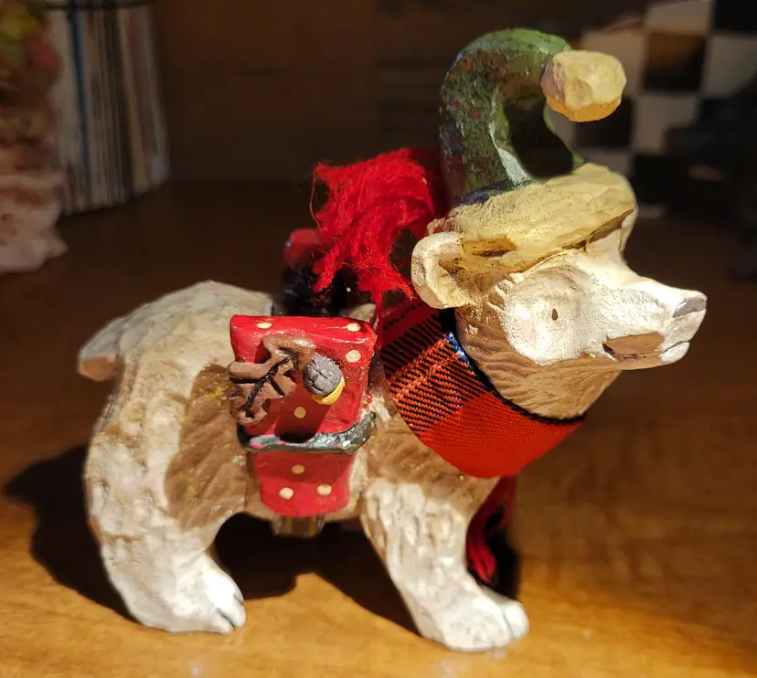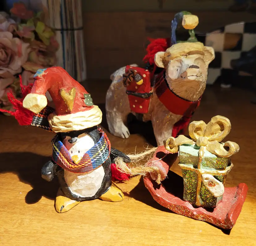 This cute little guy is made of resin, and pairs well with Kurt S. Adler Snowtown Snowfolk Animals - Penguin Pulling A Sled (can be found in my catalog.) Made in China. No chips or cracks, and from a smoke free home. Please refer to the pictures for its condition and size. Approx. 5x3.5x2