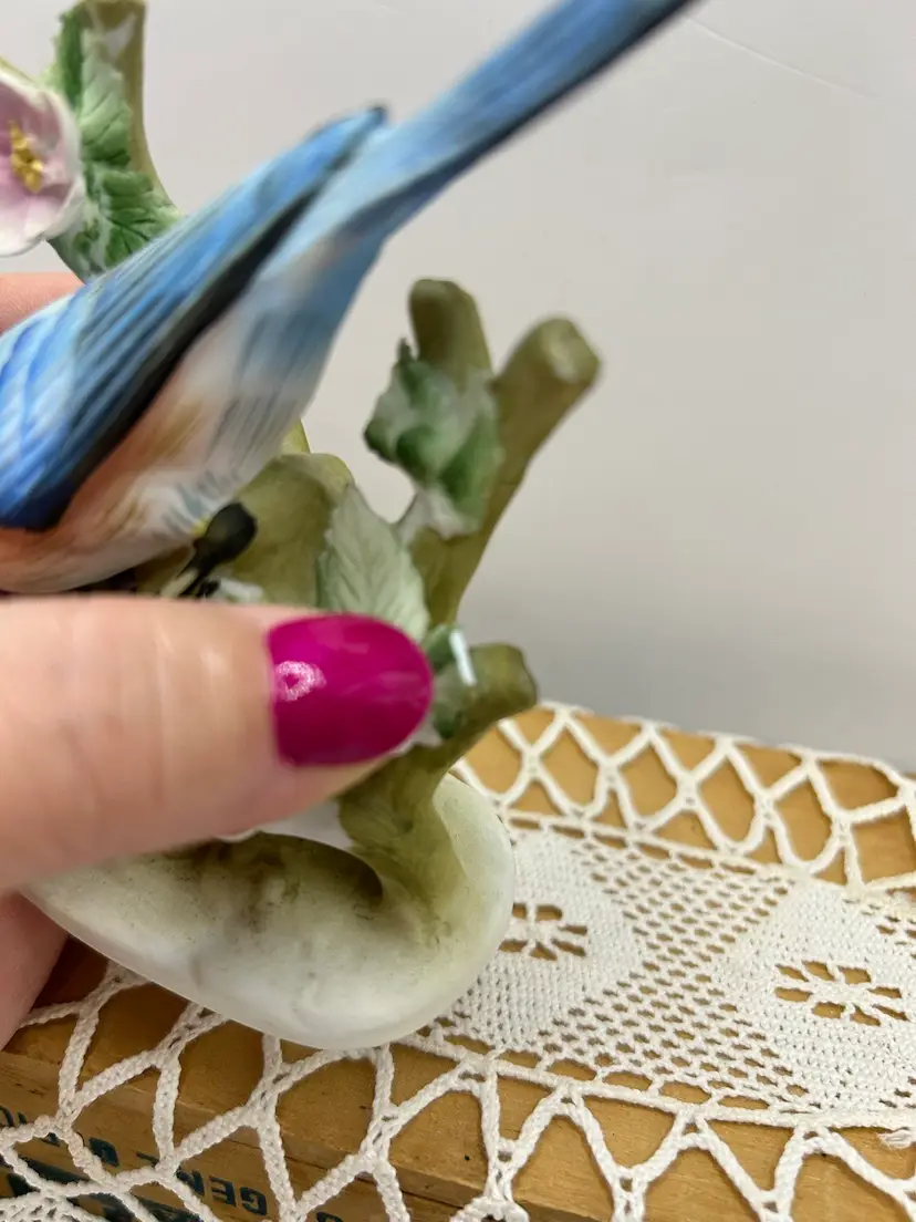 Lefton Blue Bird Figurine Tip Of Leaf Broken