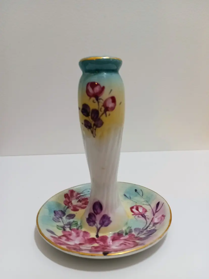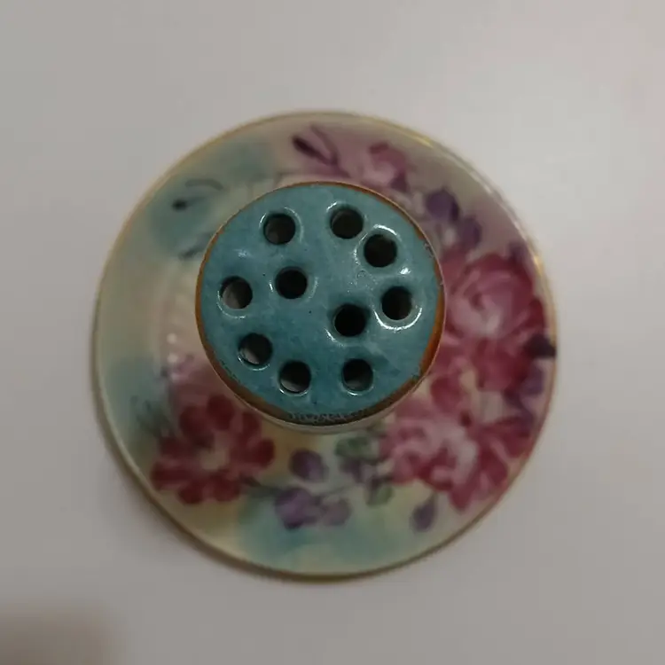 Beautiful Vibrant Limoges 10 Hole Stick Pin Holder; Gold Trim; 6" T x 4.5" Across Bottom; Excellent Condition! No Chips Or Cracks