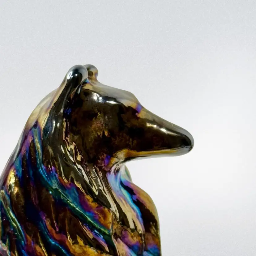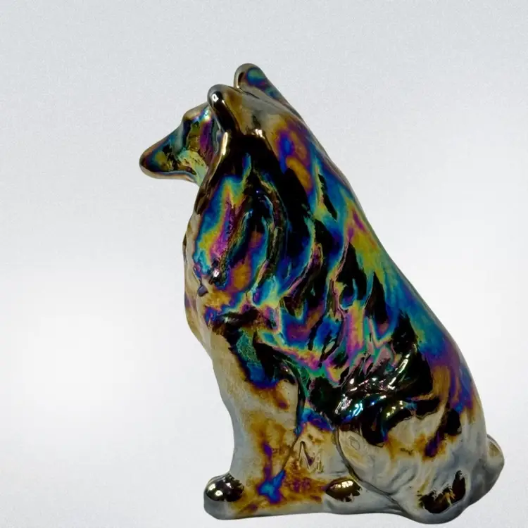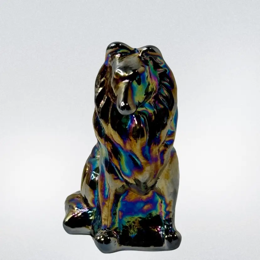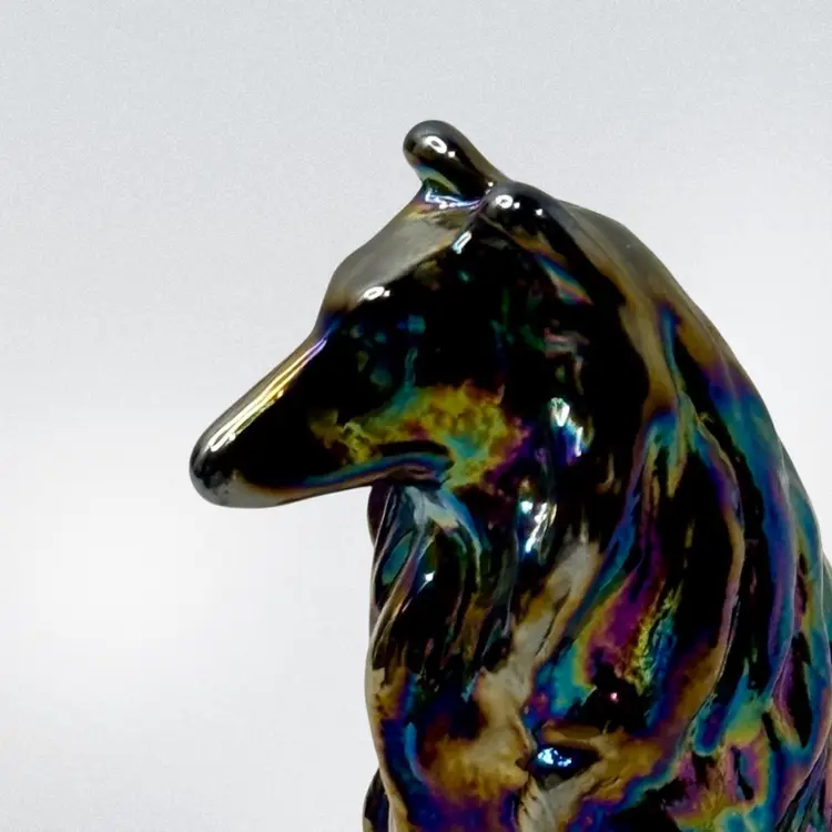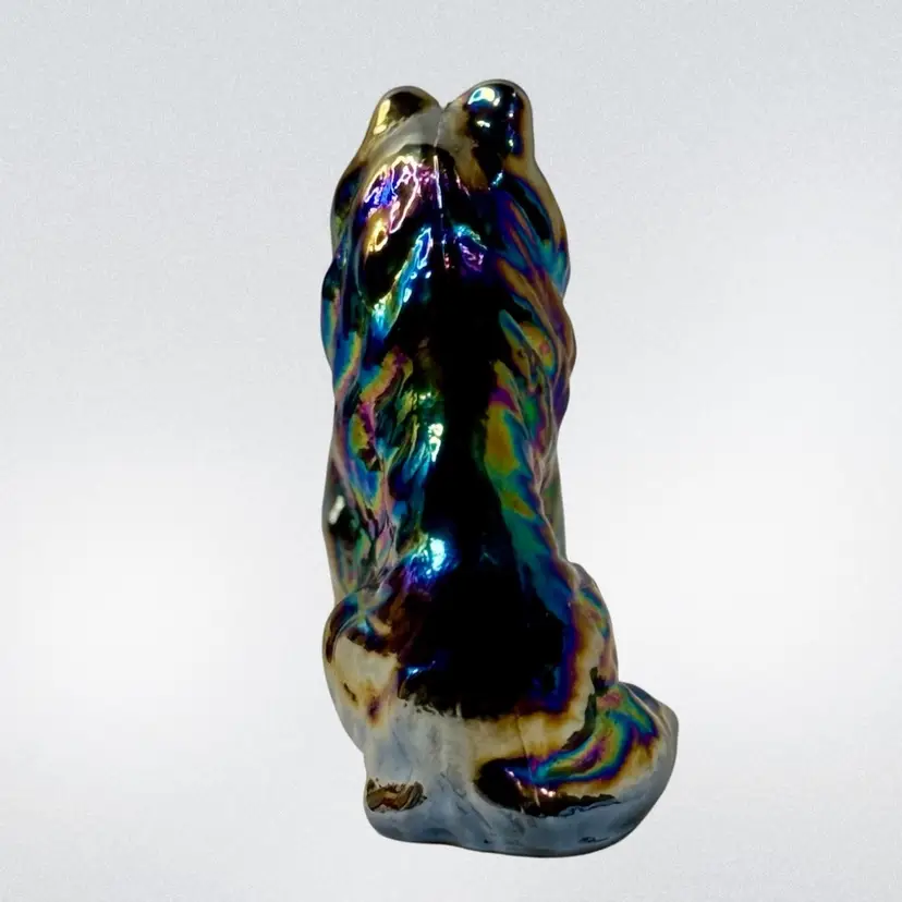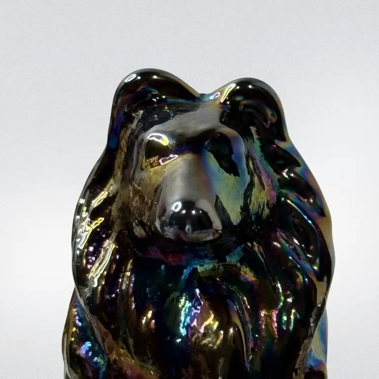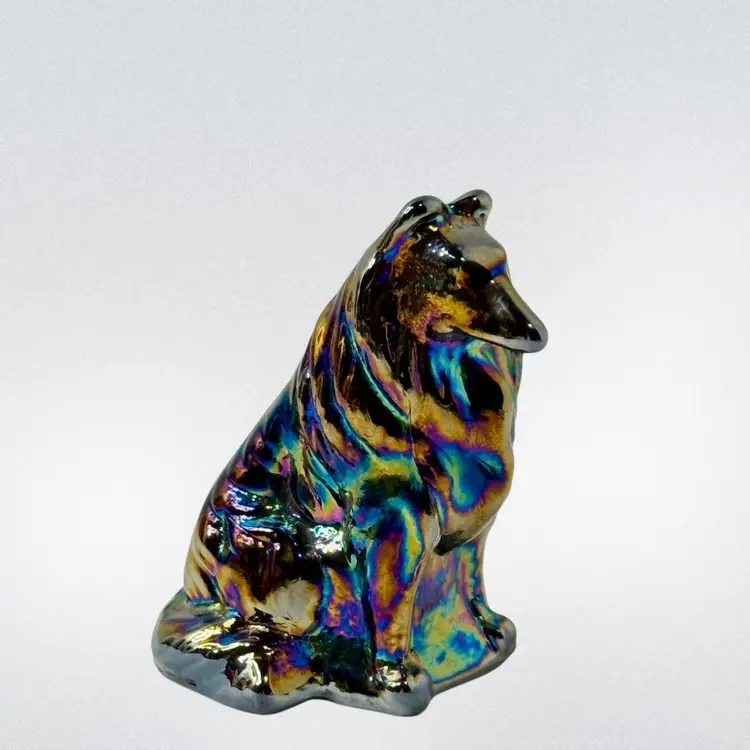Moser carnival glass Collie Dog paperweight.