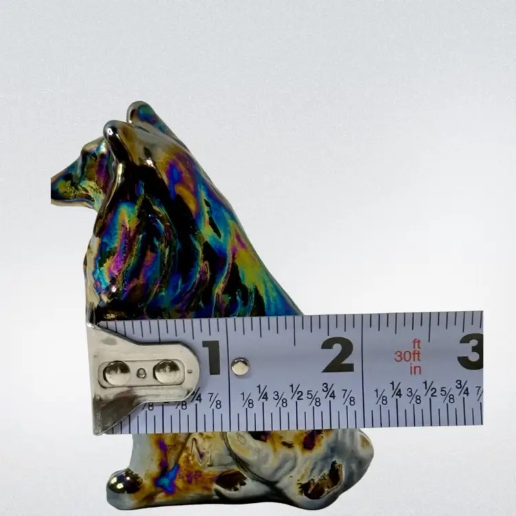 Moser Border Collie Paperweight Figurine Purple Carnival Iridescent Glass 3” T x 2” L x 1-1/2” W