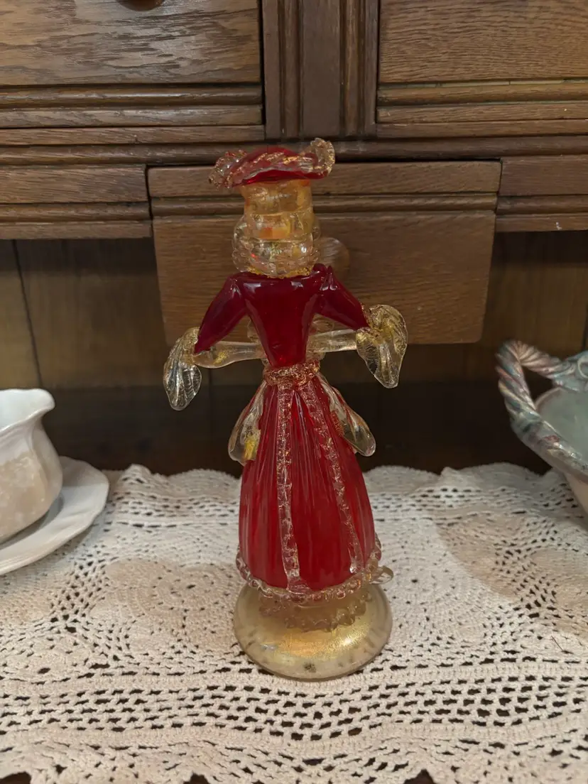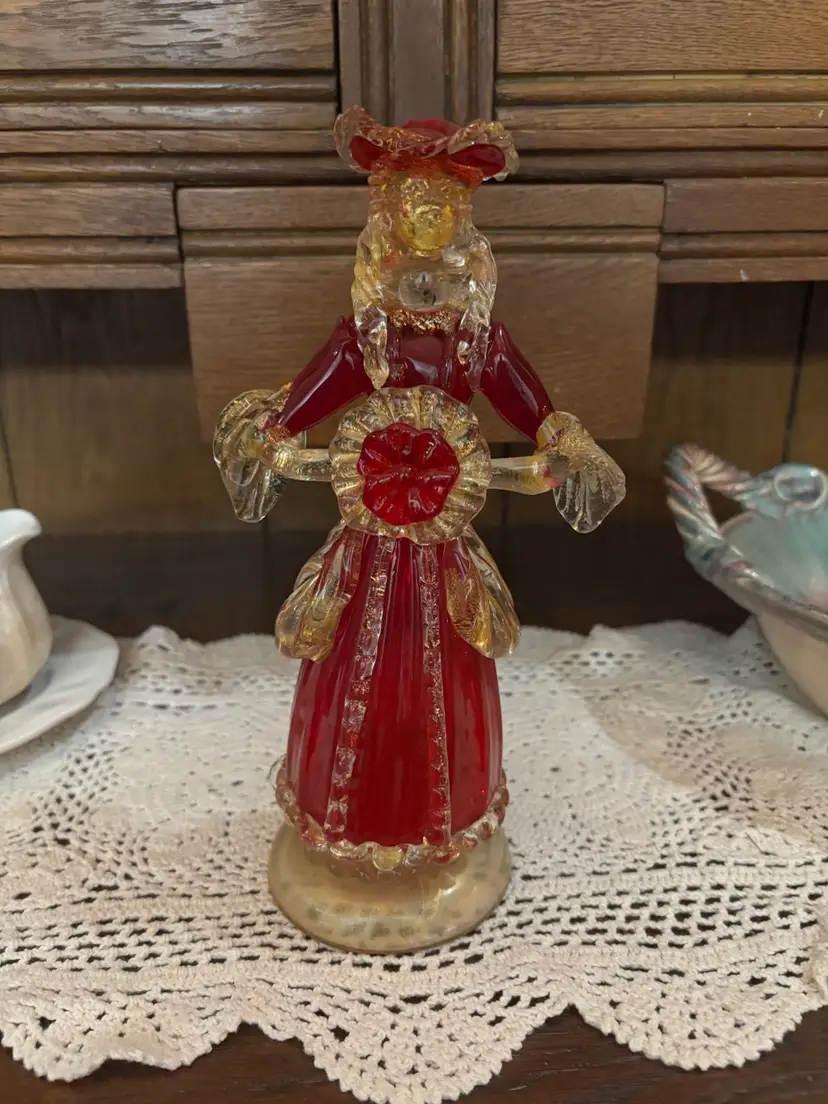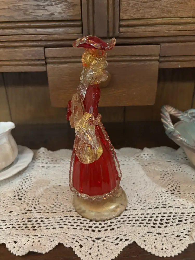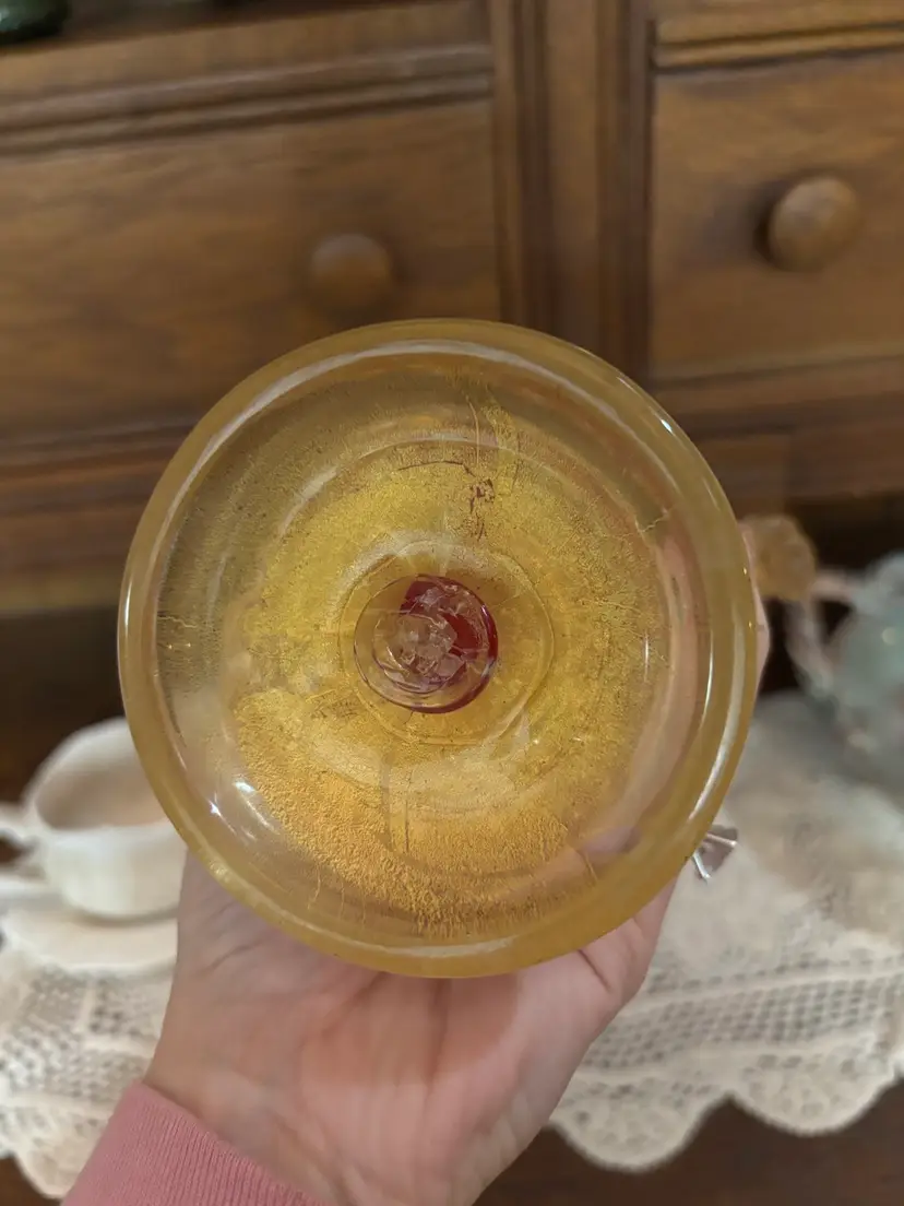 Red and Gold with flecks of gold in the Handblown glass!!! 9.75” tall No chips or cracks noted