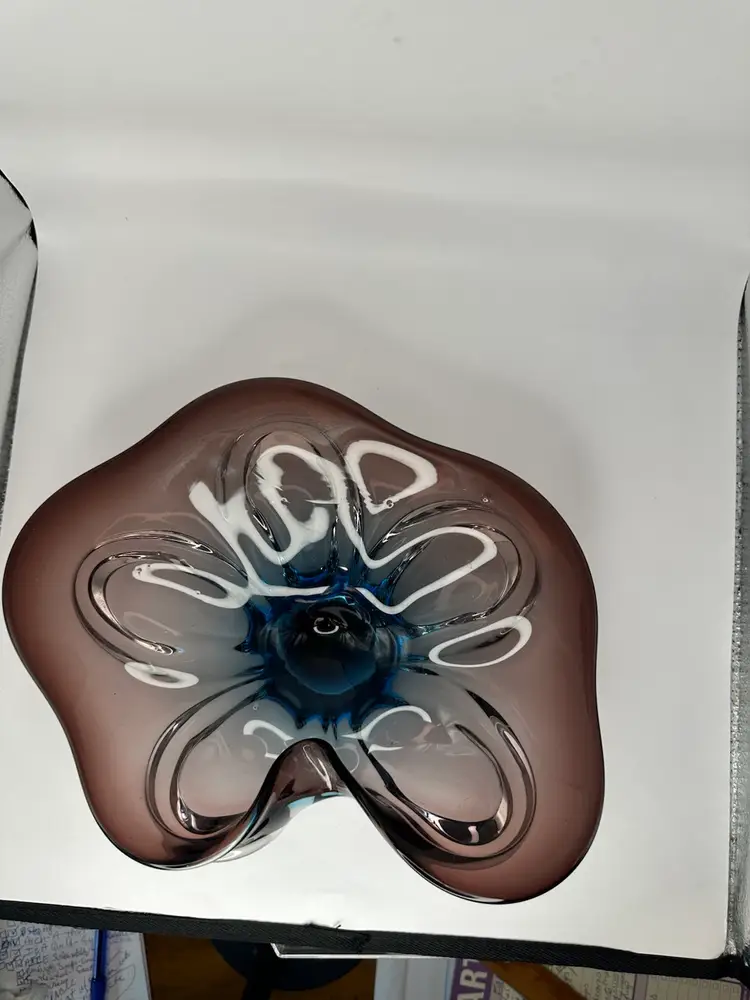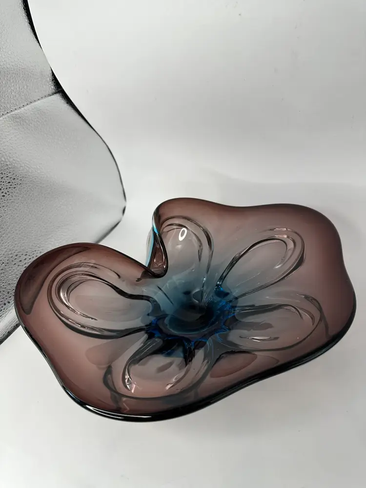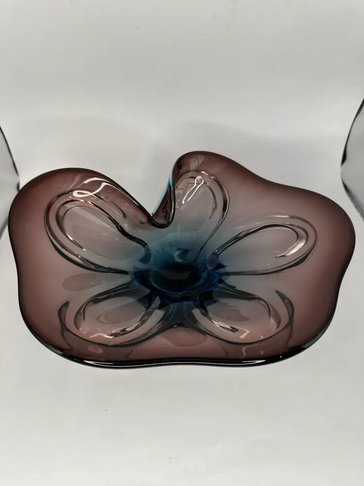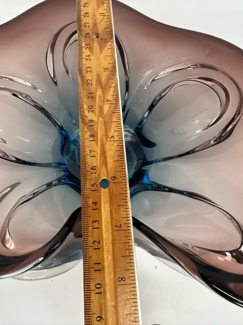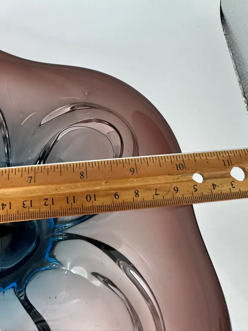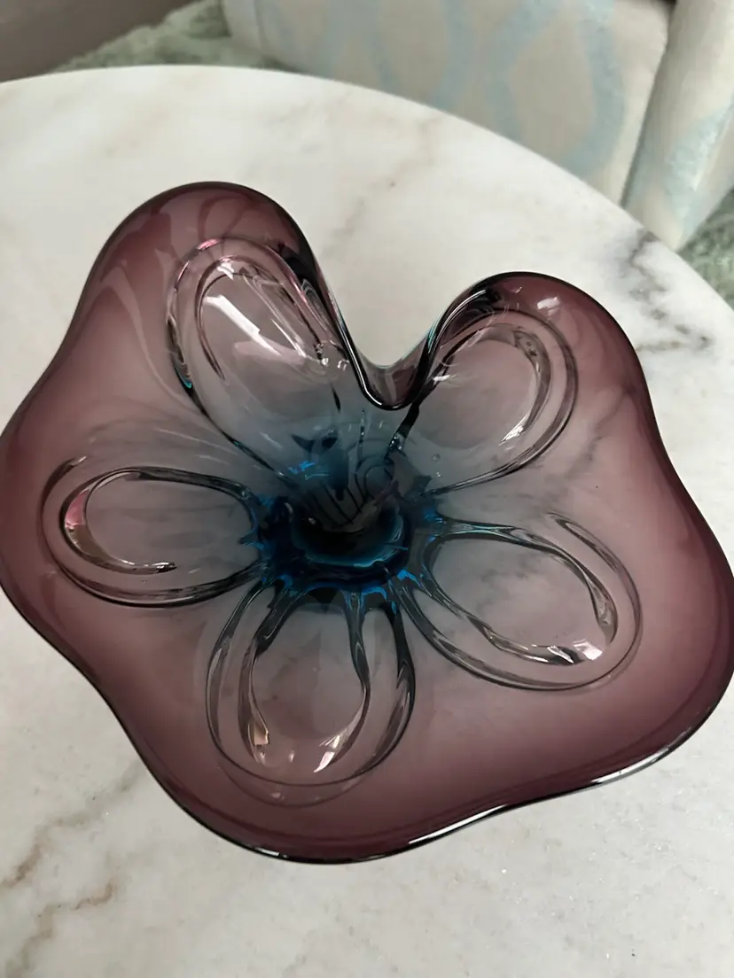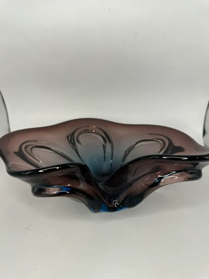 No chips or cracks 10” wide Verified via catalogue found on Murano Facebook group Year unknown Purple and blue
