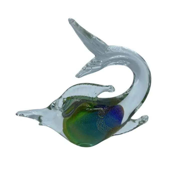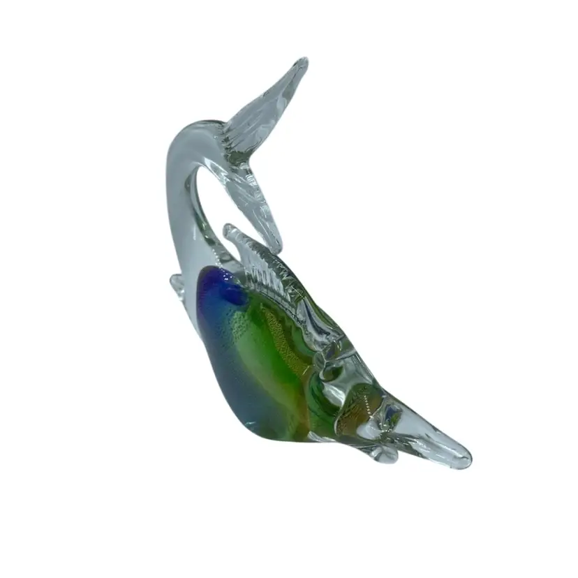 Beautiful Marlin/Swordfish Murano style mouth blown fish. Made in Italy. Beautiful blue/green/gold color wave. A nice piece to add to any collection!