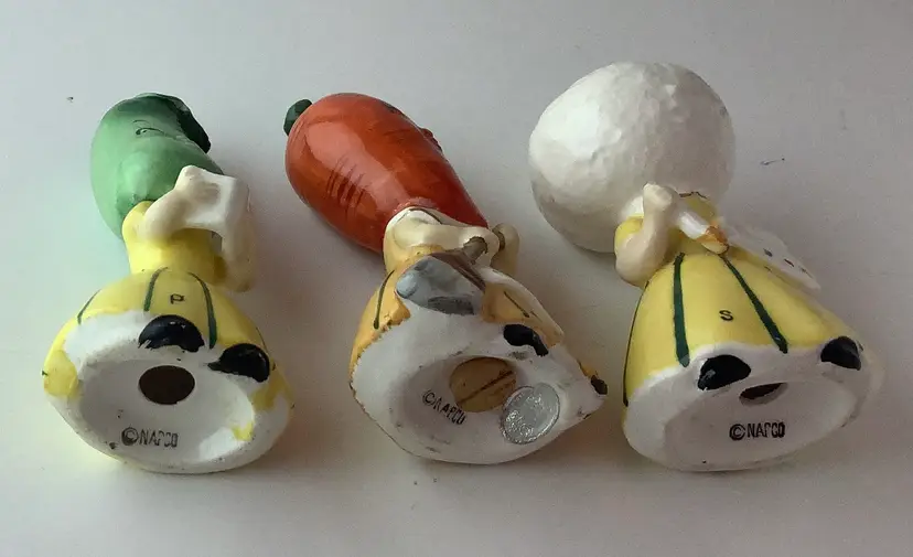 These beauties measure 2.75β. The third one has a blank head, think it was an orange? Napco written on bottom and foil stickers. Good condition. Threw the blank one in for good measure. Merry Christmas! I ship ASAP, UPS, secure packing.β€οΈππΌππ₯π€ͺπ