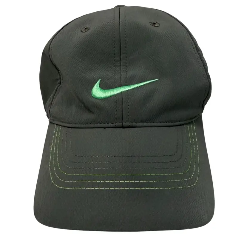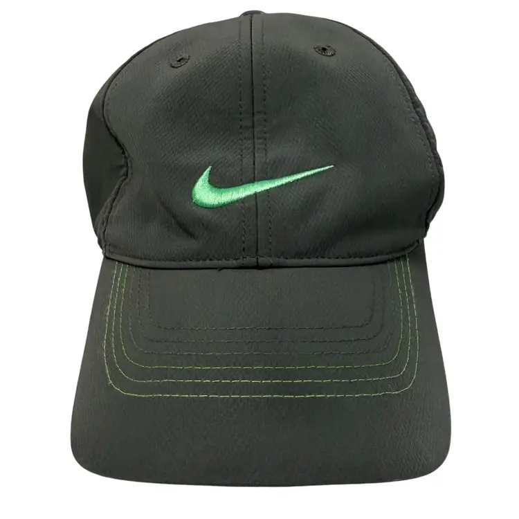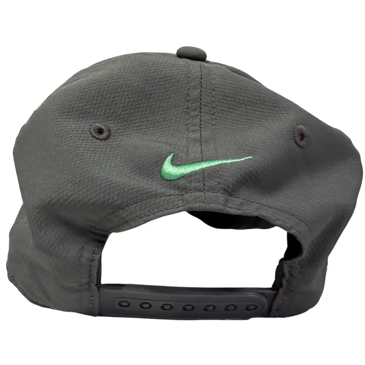 The Nike Golf Hat in gray with the iconic Nike Swoosh in green is a stylish and versatile accessory suitable for both men and women. Made from 100% polyester with a blended fabric type, this adjustable golf snapback hat features an embroidered logo and lightweight design, making it perfect for outdoor activities like golfing. The solid color and classic theme make it a great addition to your activewear or casual wardrobe, suitable for all seasons. Whether you're hitting the links or simply enjoying the great outdoors, this Nike golf hat is a must-have for any sports enthusiast.