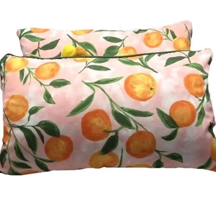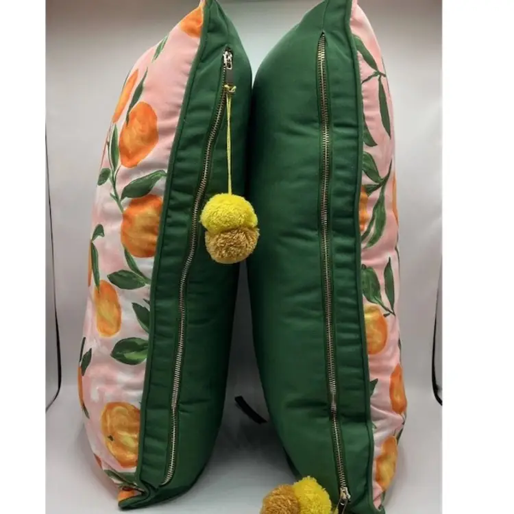 Novogratz Peach Fruit Pillow Set Of 2 Rectangle Pom Zip Water Resistant 20" NEW