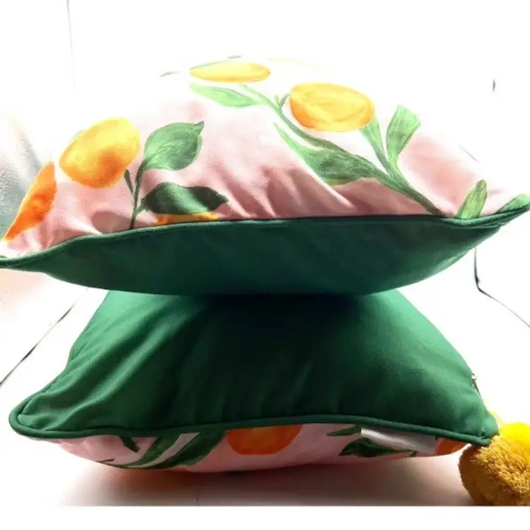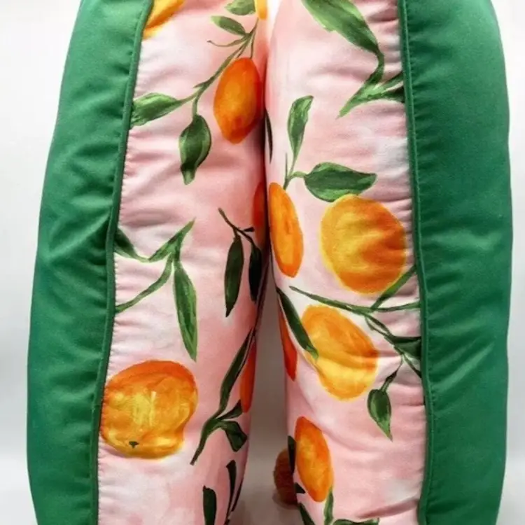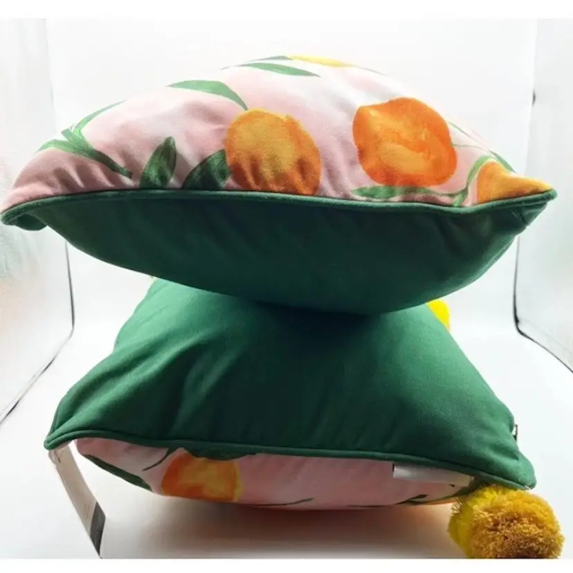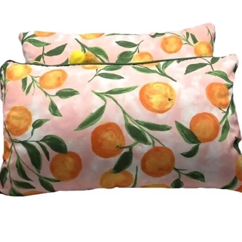 Novogratz Peach Tree Fruit Pillow Set Of 2 Rectangle Pom Zip Water Resistant 20"