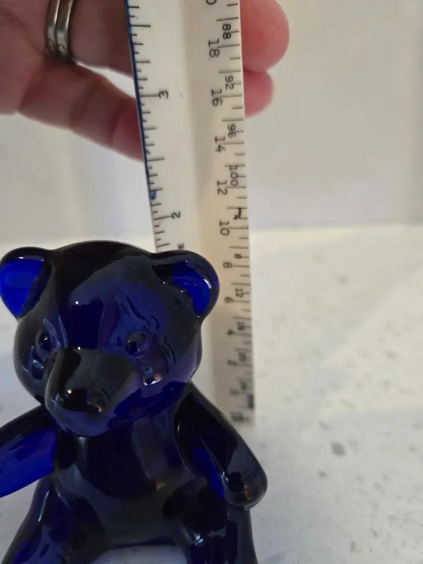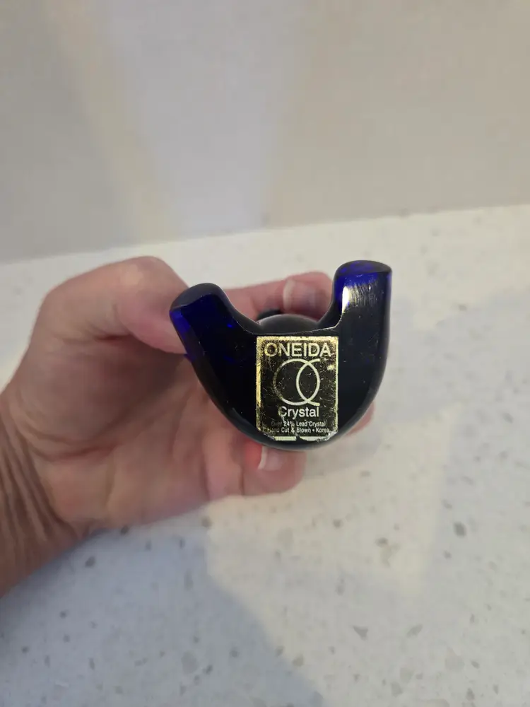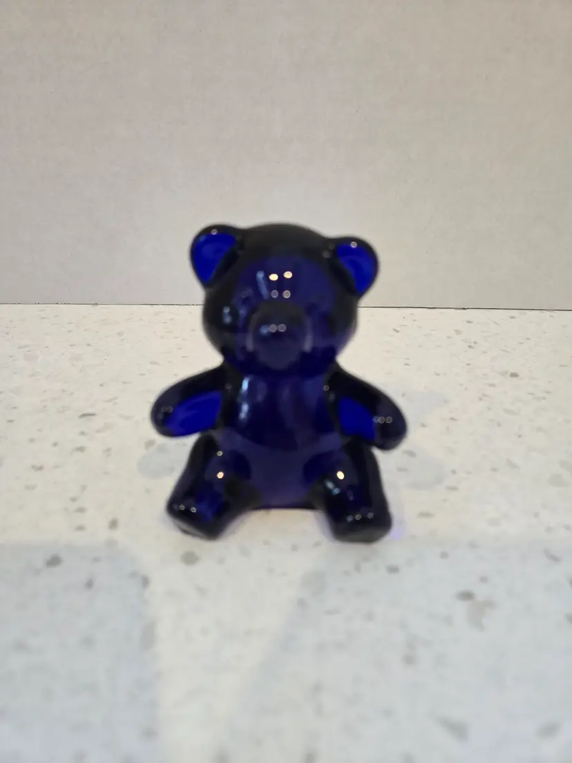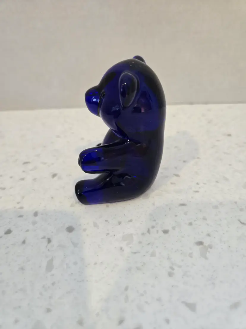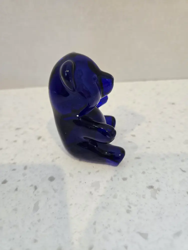 2" tall 24% lead crystal Oneida Bear, cobalt blue, hand cut & blown glass, made in Korea, no chips or cracks