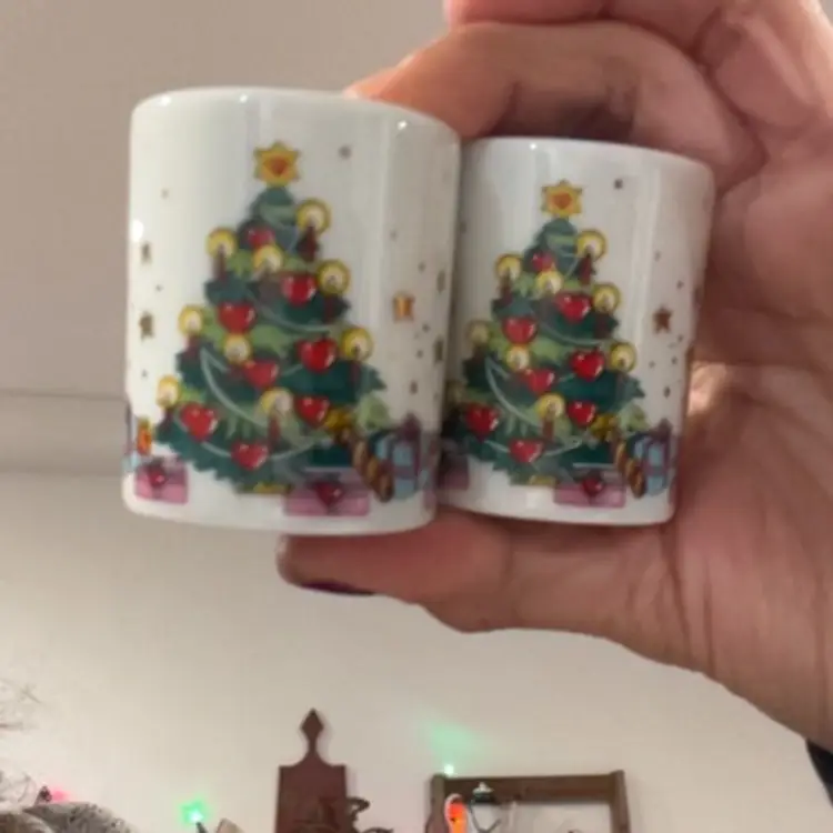 Pair Of West German Porcelain Christmas Tree Cylinder Candle Holder 2”