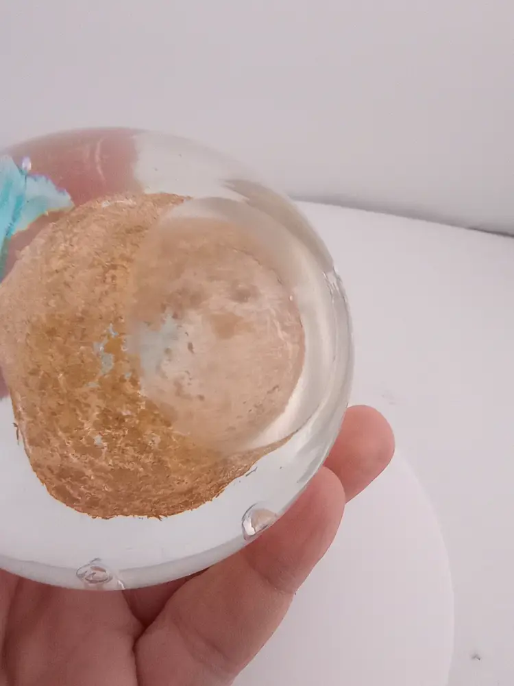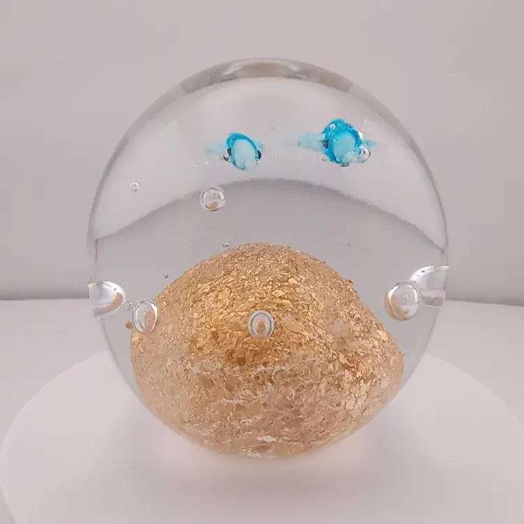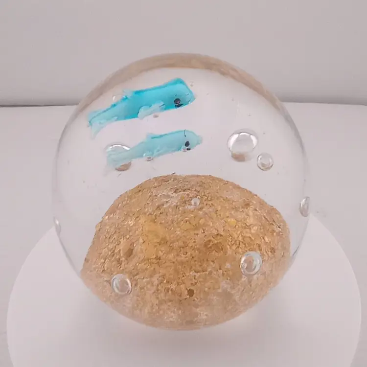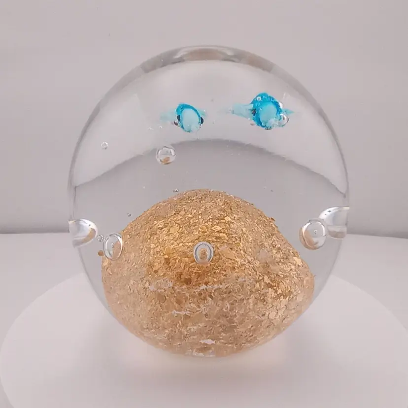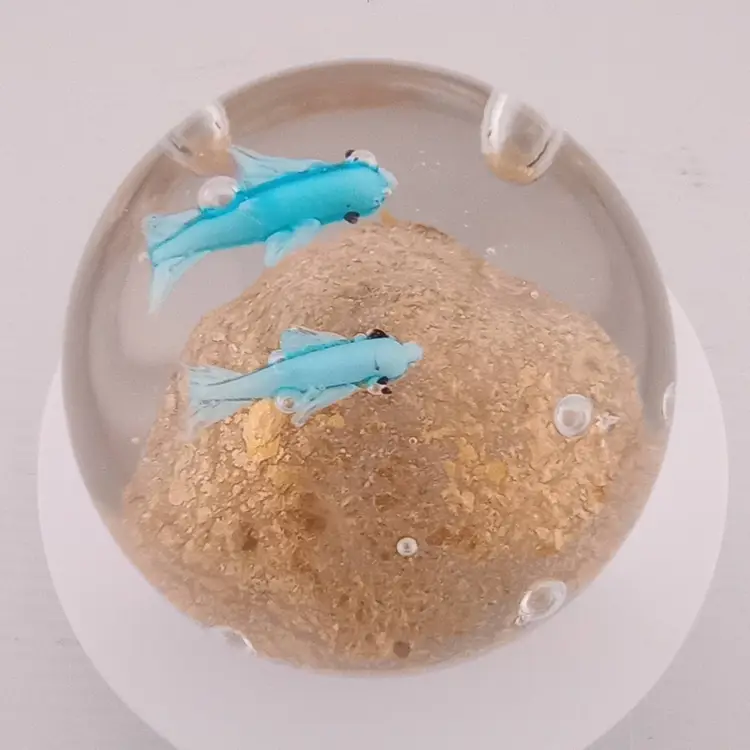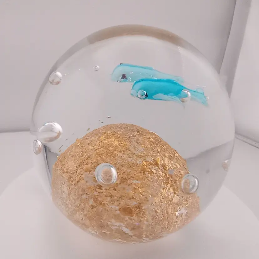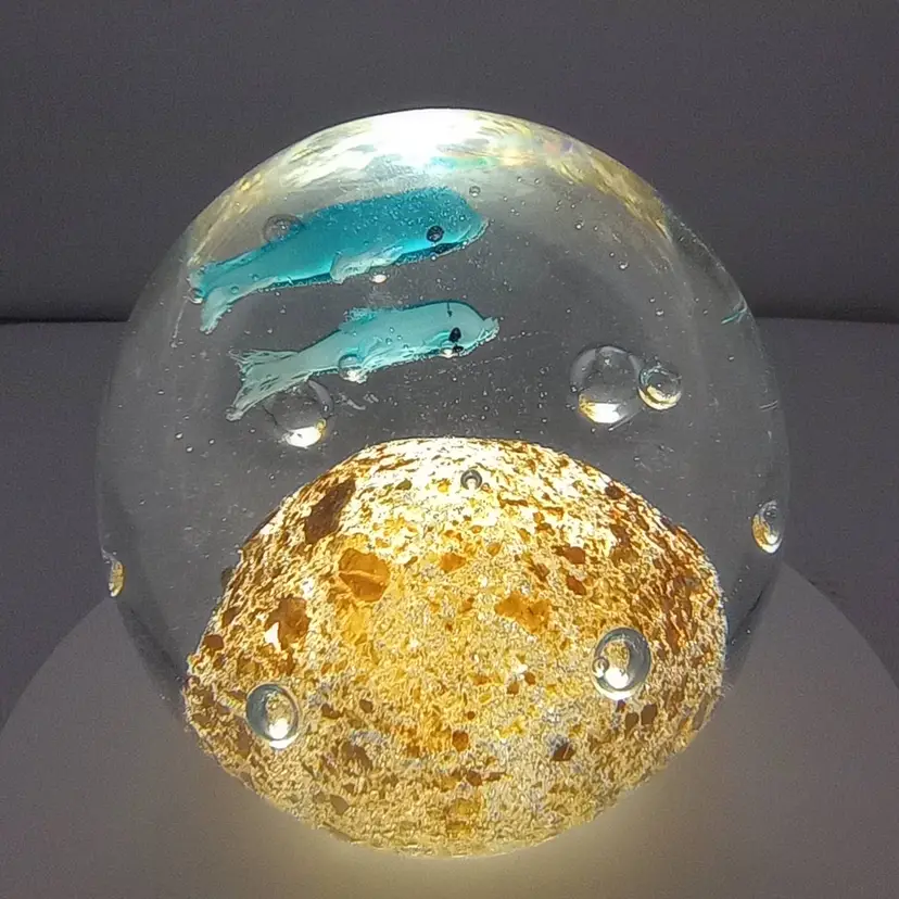 This pretty paperwight with two whales swimming across a shimmery gold ground is in excellent condition with no noted flaws.
