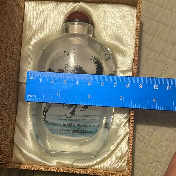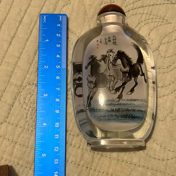 Reversed painted with stallions. Very pretty comes with box and certificate. This is a larger one please see pictures for details.