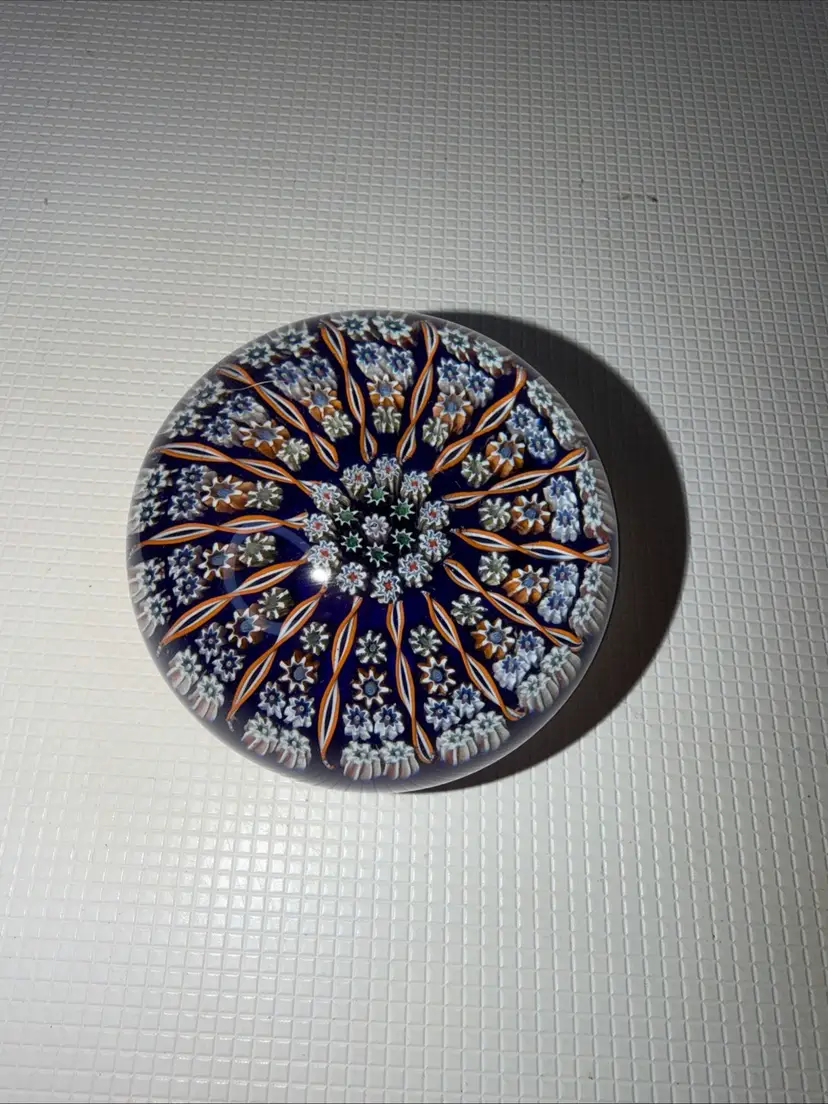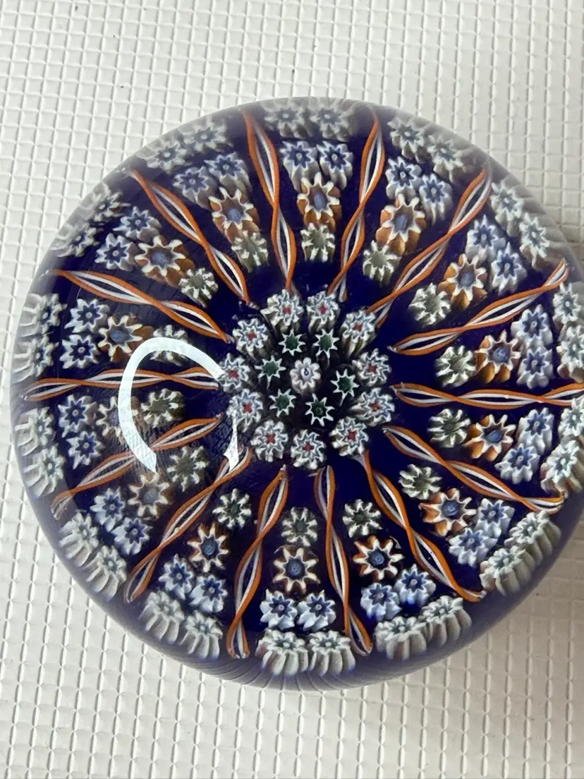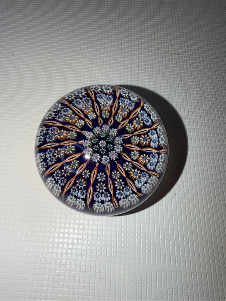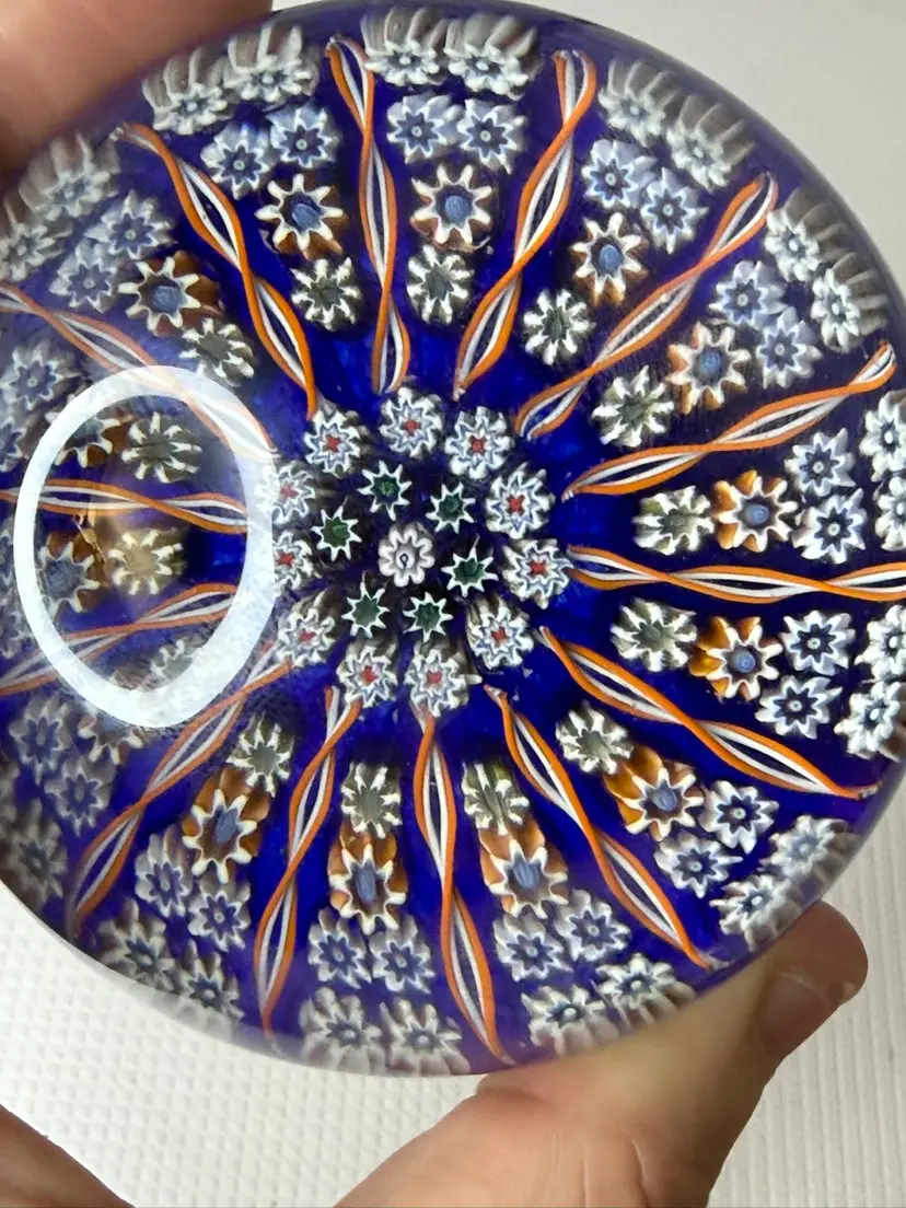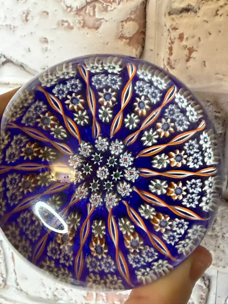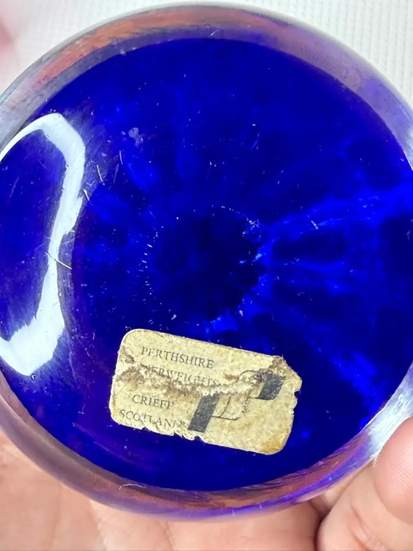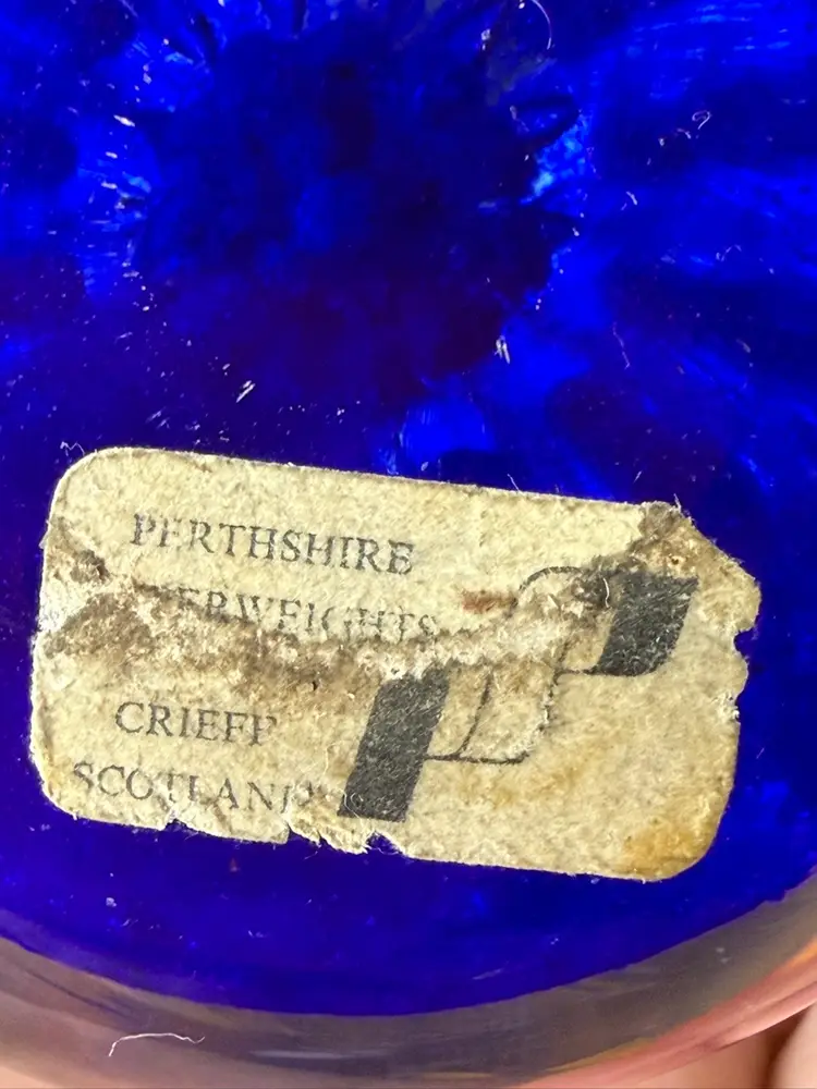Perthshire Art Glass Paperweight Millefiori Crieff Scotland Button Is Blue