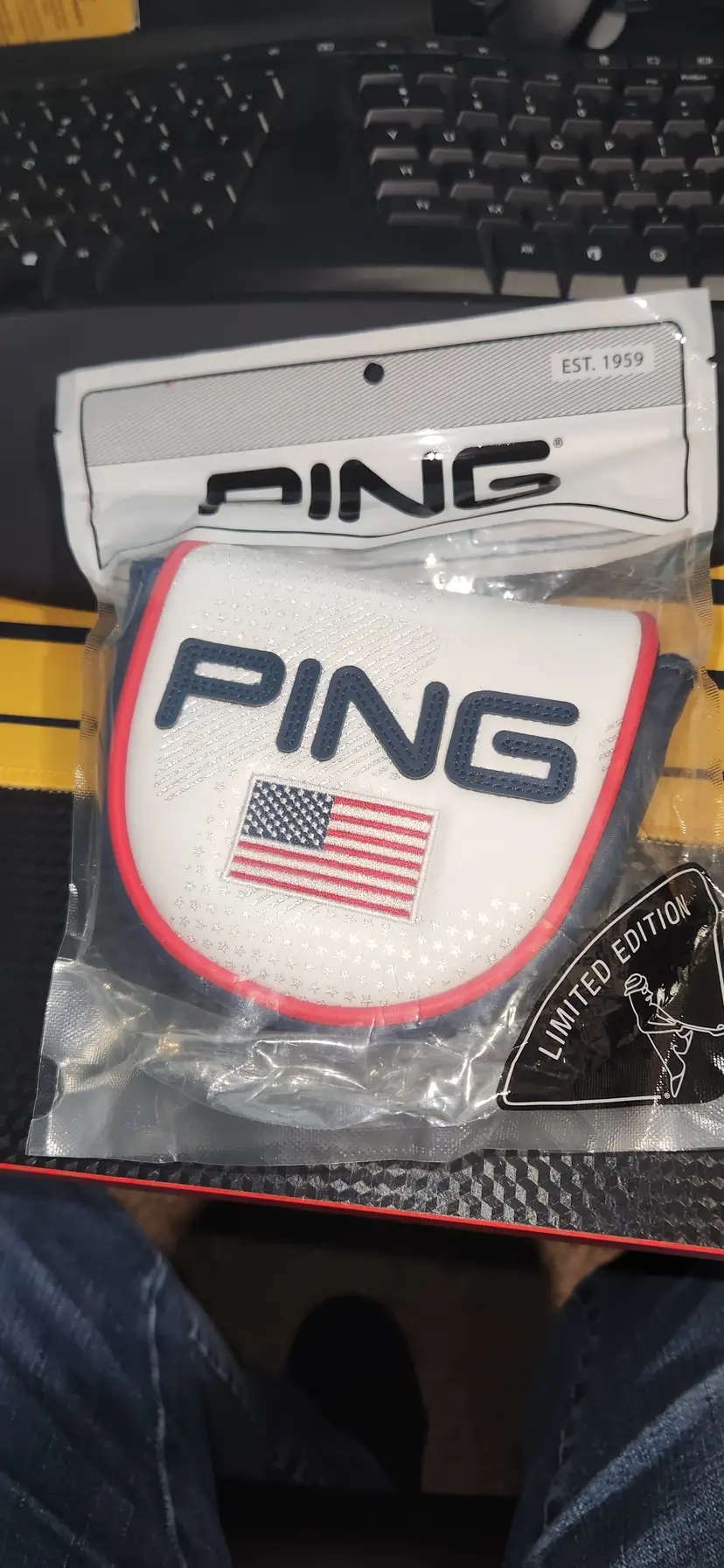Ping mallet head cover. Limited edition american flag. Red, white and blue. New inbthe plastic. Velcro closing.