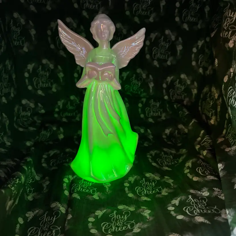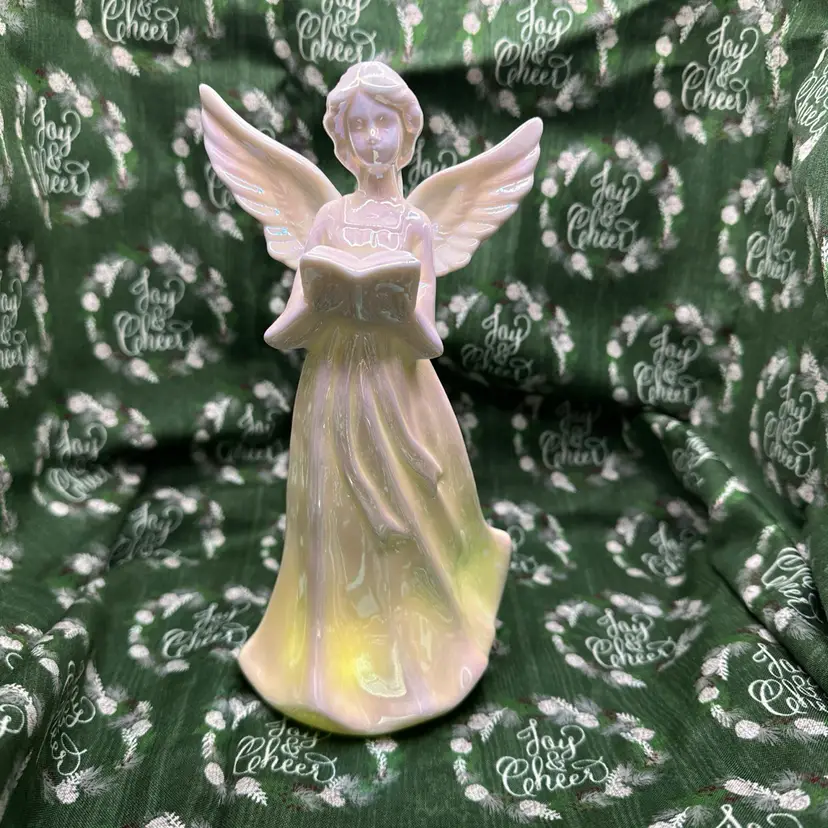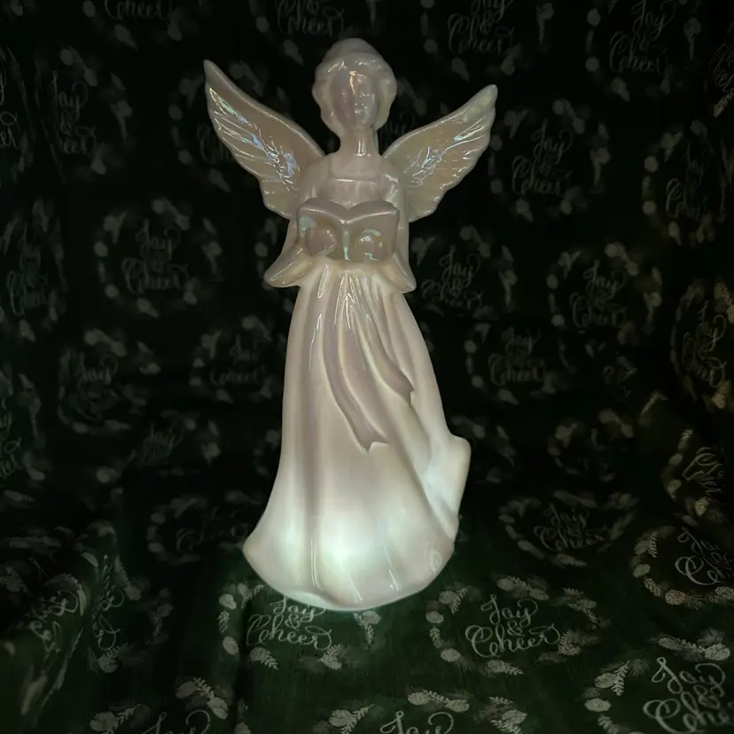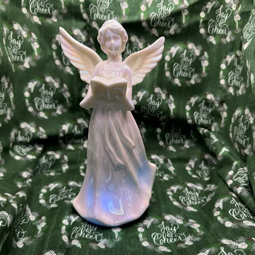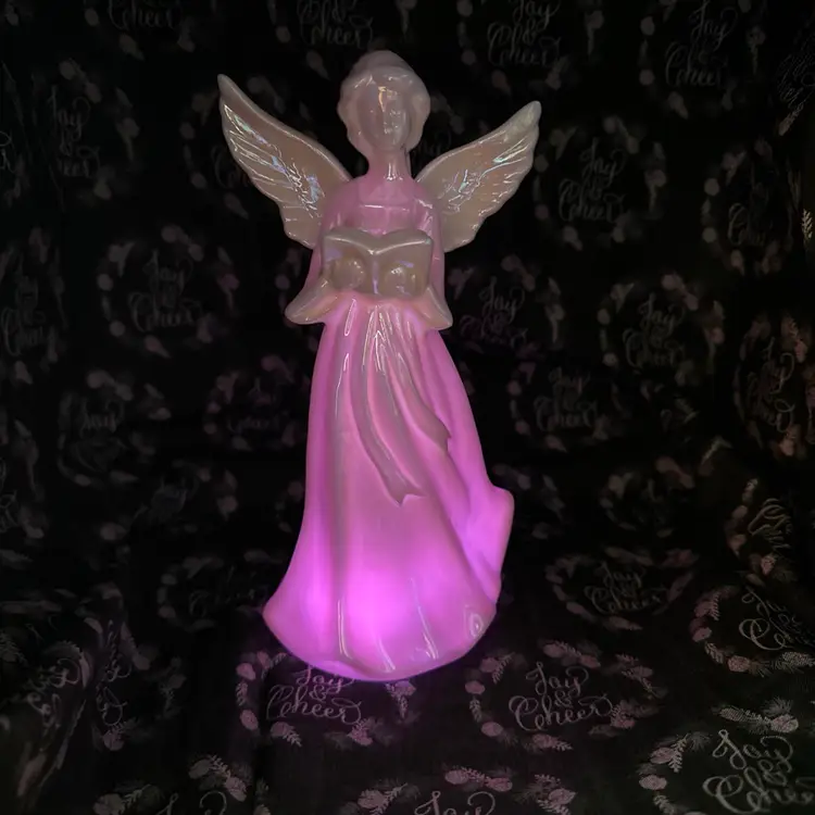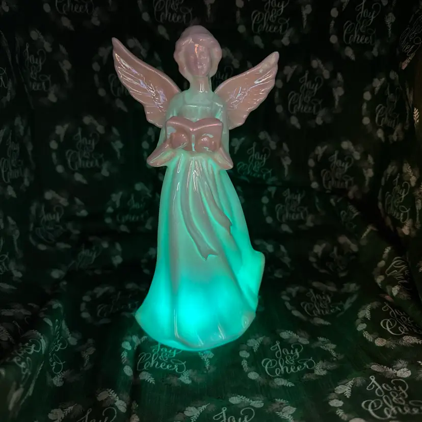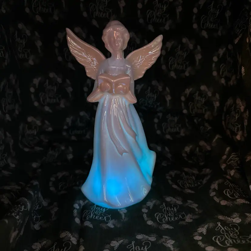 Porcelain Angel Holding Book Glows Steady Soft White Or Multi Color excellent condition no chips or cracks small scuff on bottom
