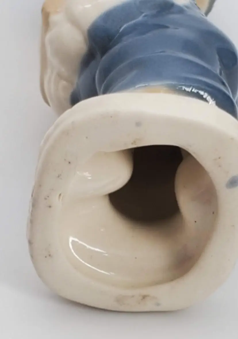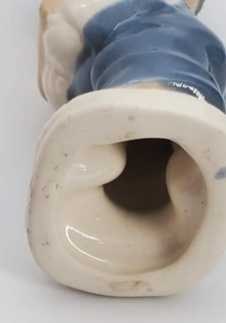 He is in pristine condition with no chips, cracks or crazing. He measures 3.75 inches tall and is about 1.5 inches wide.