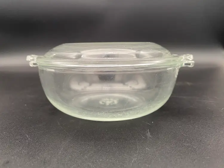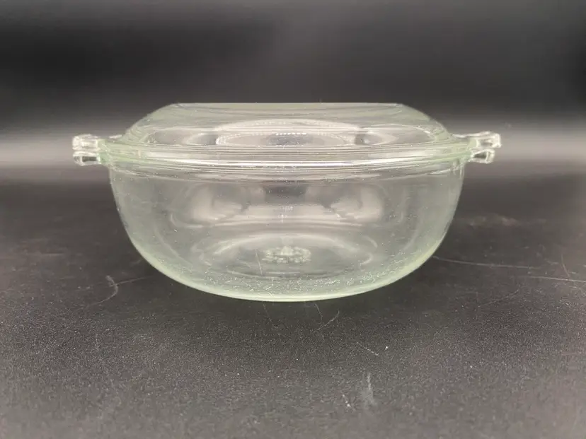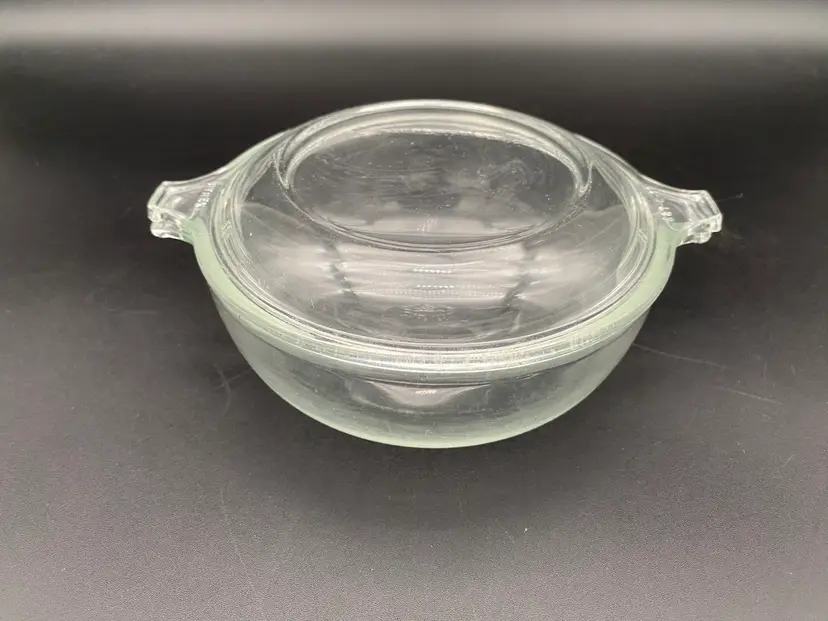 You are purchasing one Clear Glass 20 oz Baking Dish w/ Lid by Pyrex. This Dish is in overall good condition with minor signs of wear. No chips, stains or cracks, just see final image for very faint scuffs in the interior ridge of one area of the Lid.