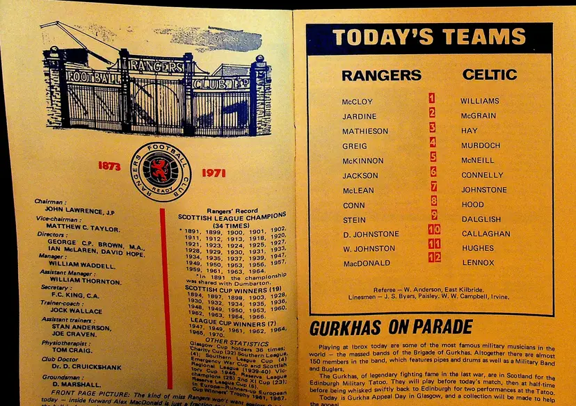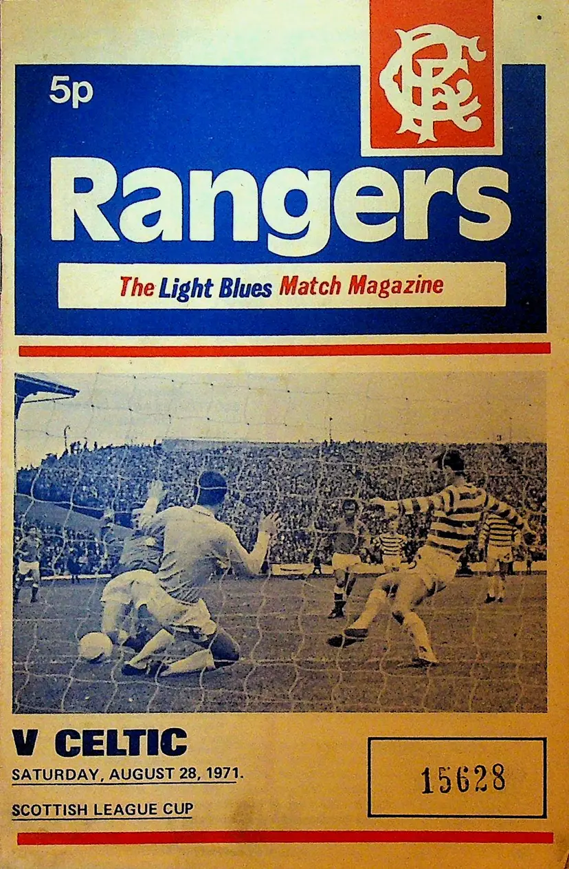 Rangers v Celtic Scottish League Cup Soccer Program August 28 1971