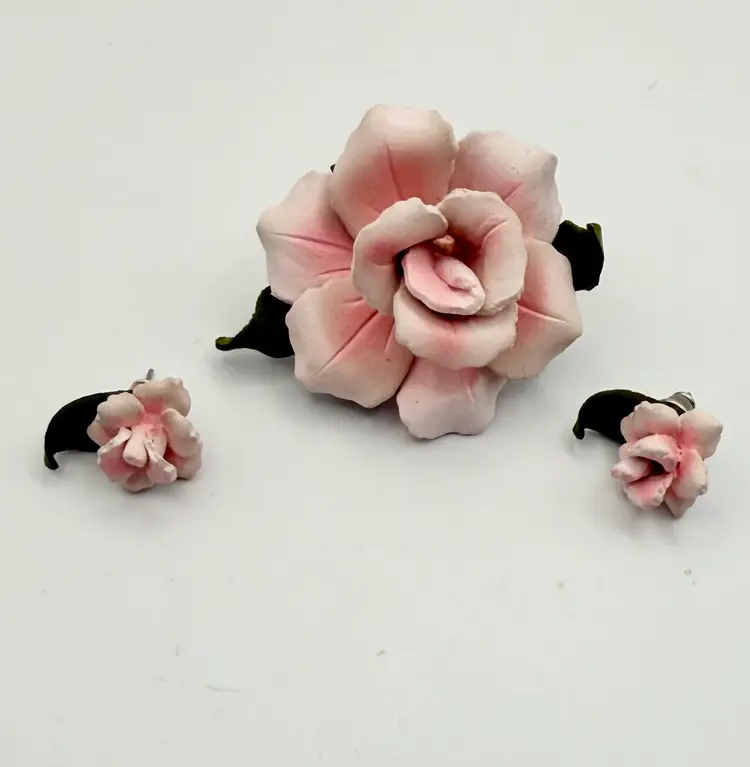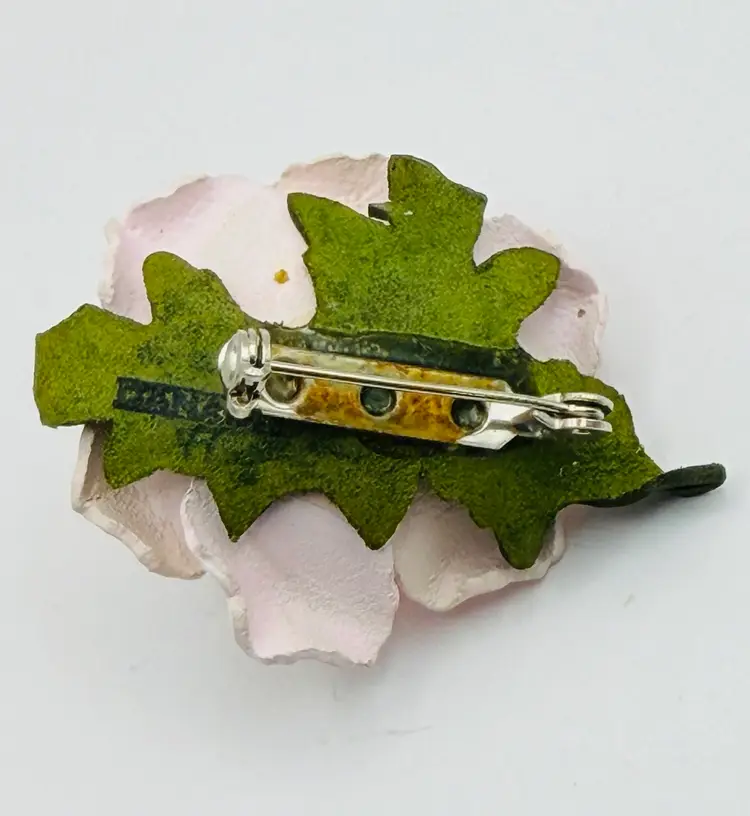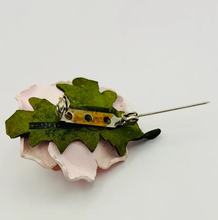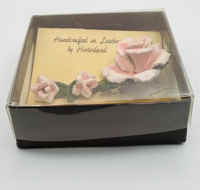 Retro Brooch & Earrings Box Set Hinterland NY Leather Designs Jewelry MCM Pink
