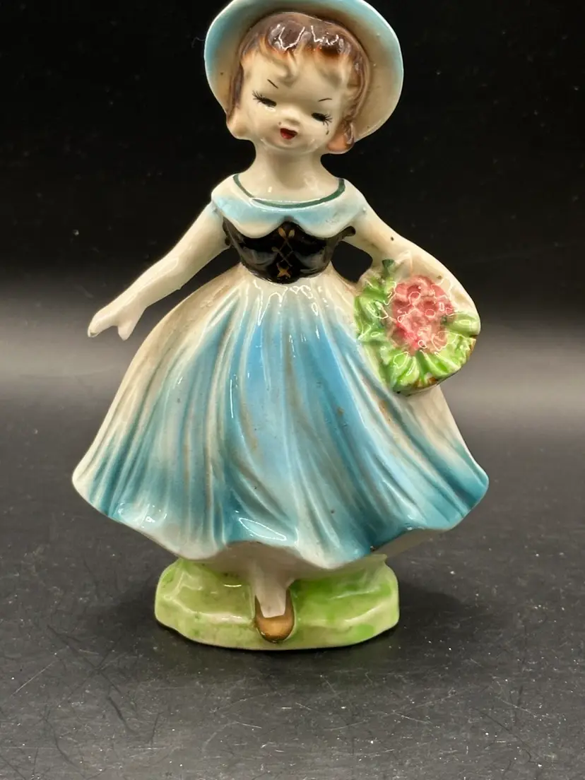 Ries Hand Painted Girl In Blue Dress 6” Tall