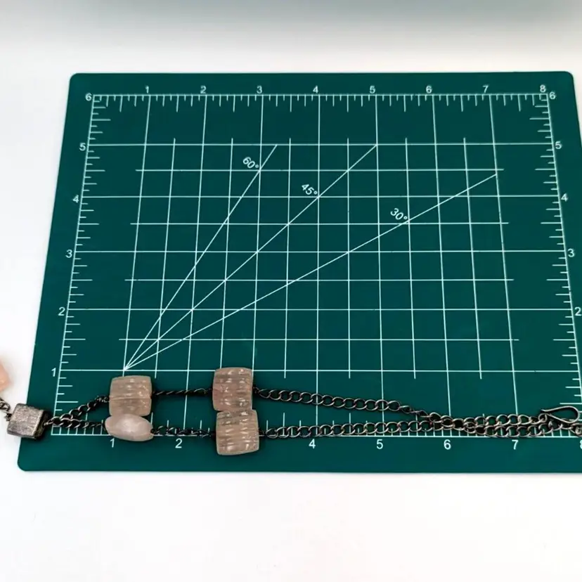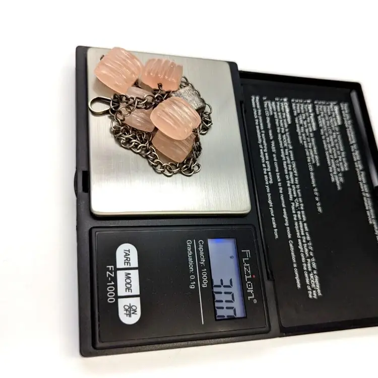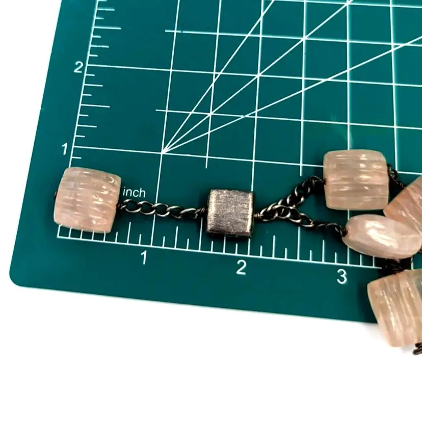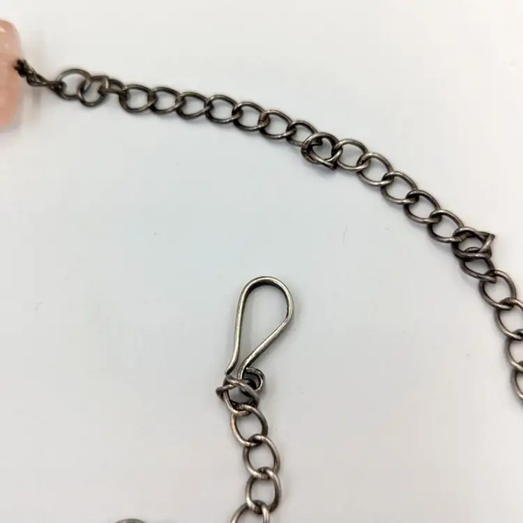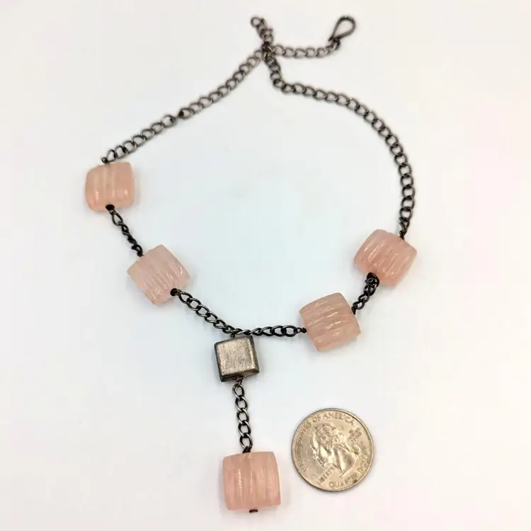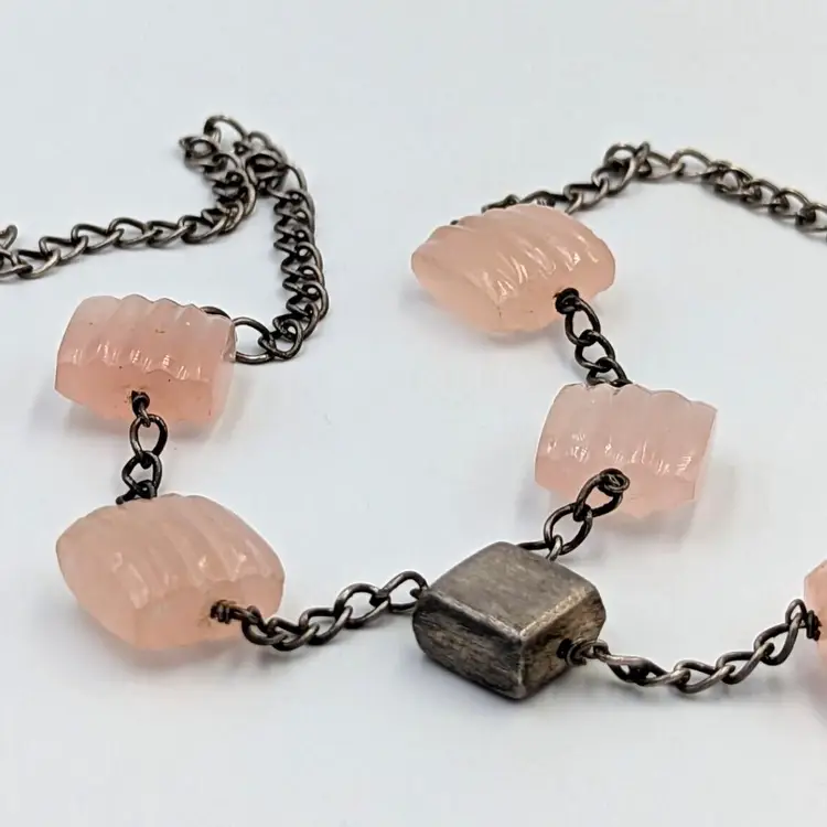 Rose Quartz Sterling Silver Necklace Y-shape Modernist Art Deco Carved Gemstones Necklace 16" long, 2" drop dangling part 30 grams total weight Marked 925 Good vintage condition
