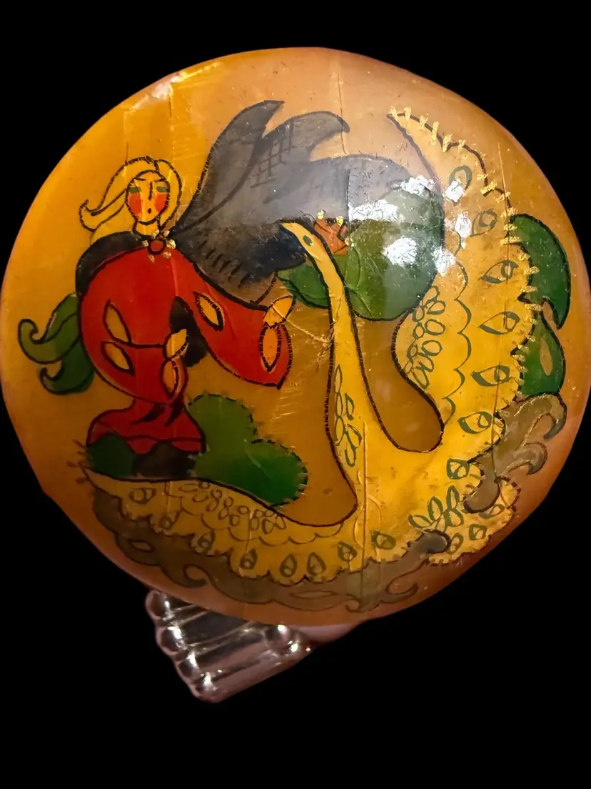 Russian Hand Painted Selenite Folk Art FolkloreVintage Brooch Pin