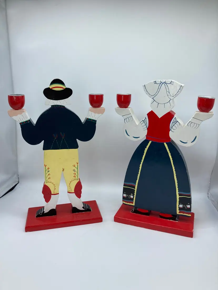 Set of two IKEA wooden candle holders, Swedish traditional costume, Lizzie Velander, Christmas Farmhouse Decor