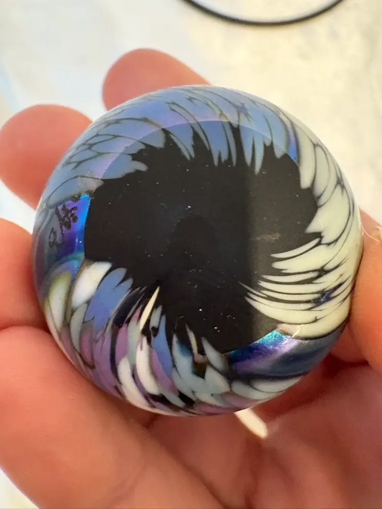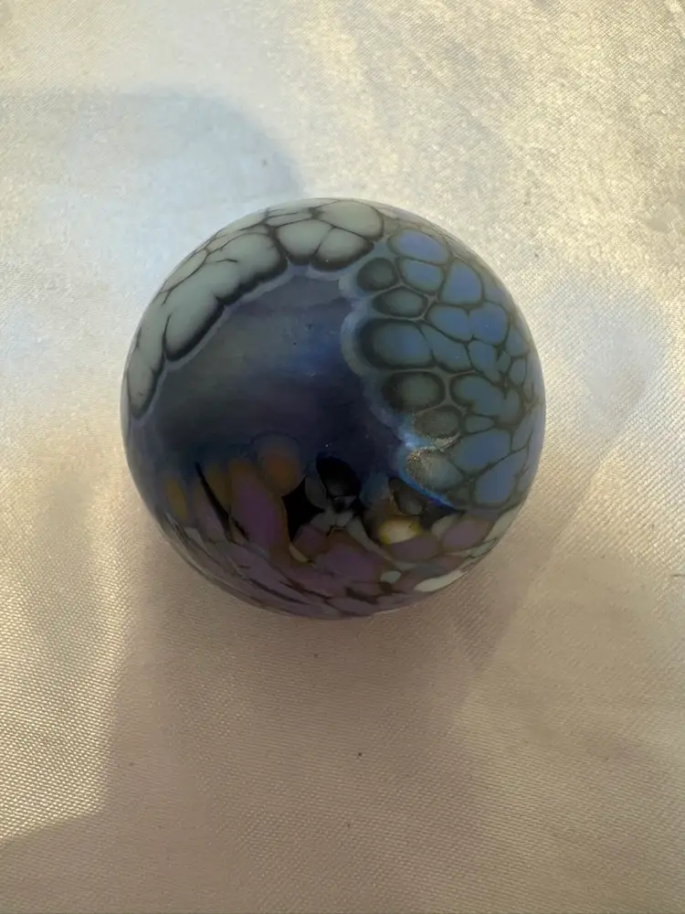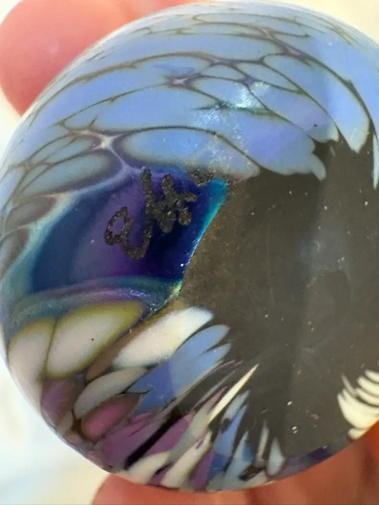 Signed Miniature ? Eickholt Iridescent Paperweight