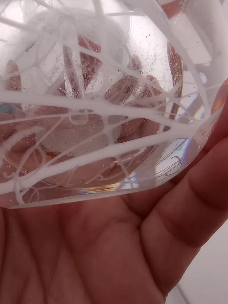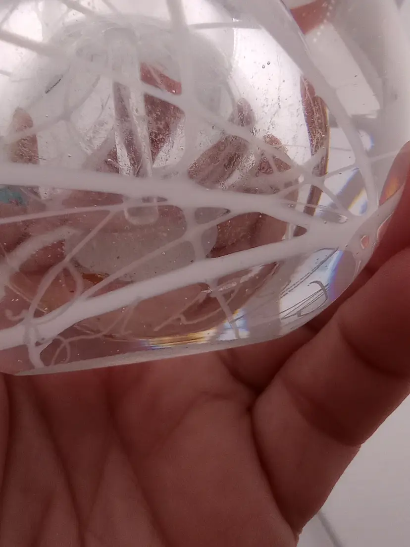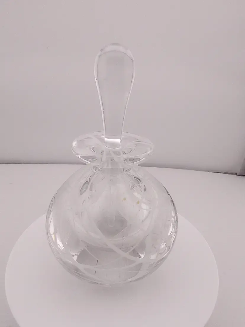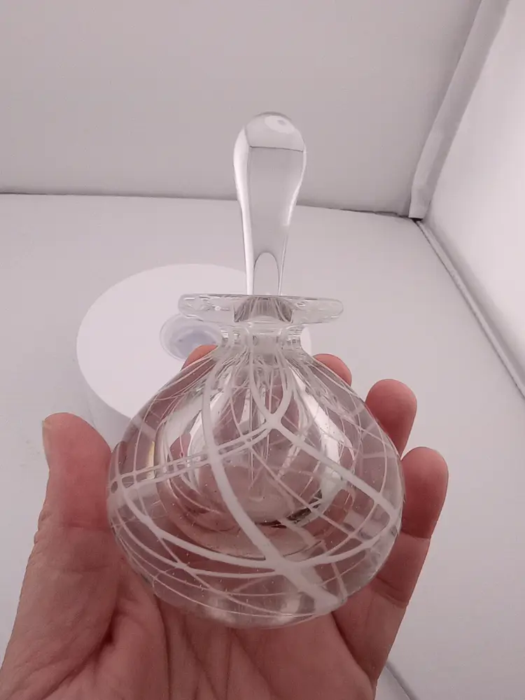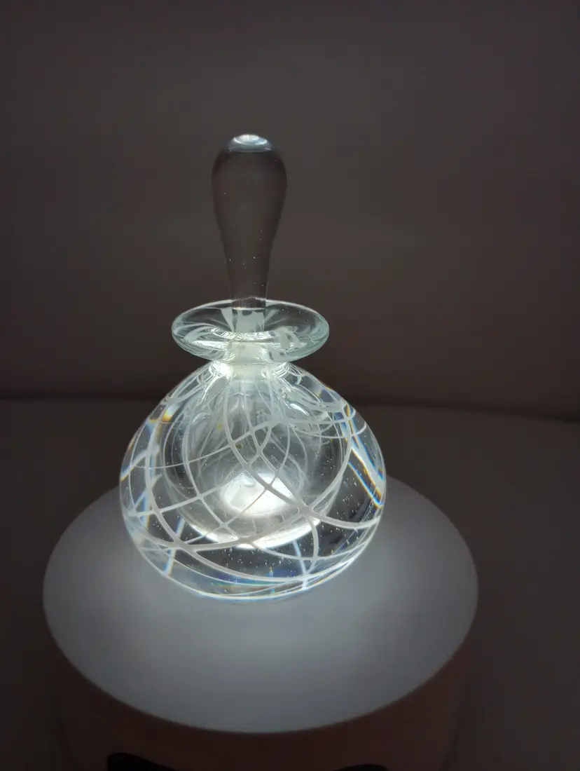 It's a beautiful art glass perfume bottle signed by Raymond D. Matthews, made in 1984. It's in excellent vintage condition with no noted flaws. It's 4.5" tall including the stopper.