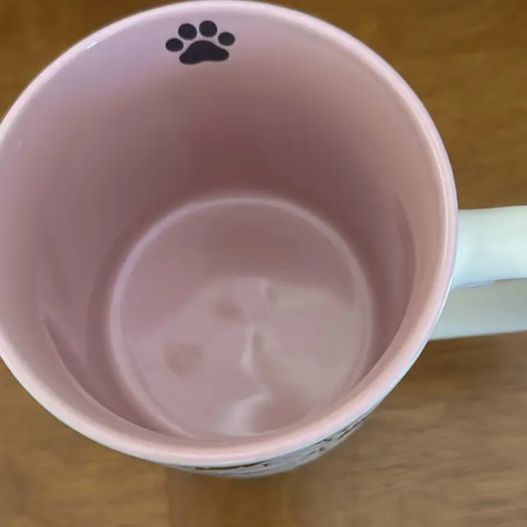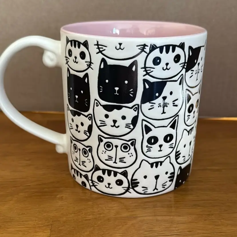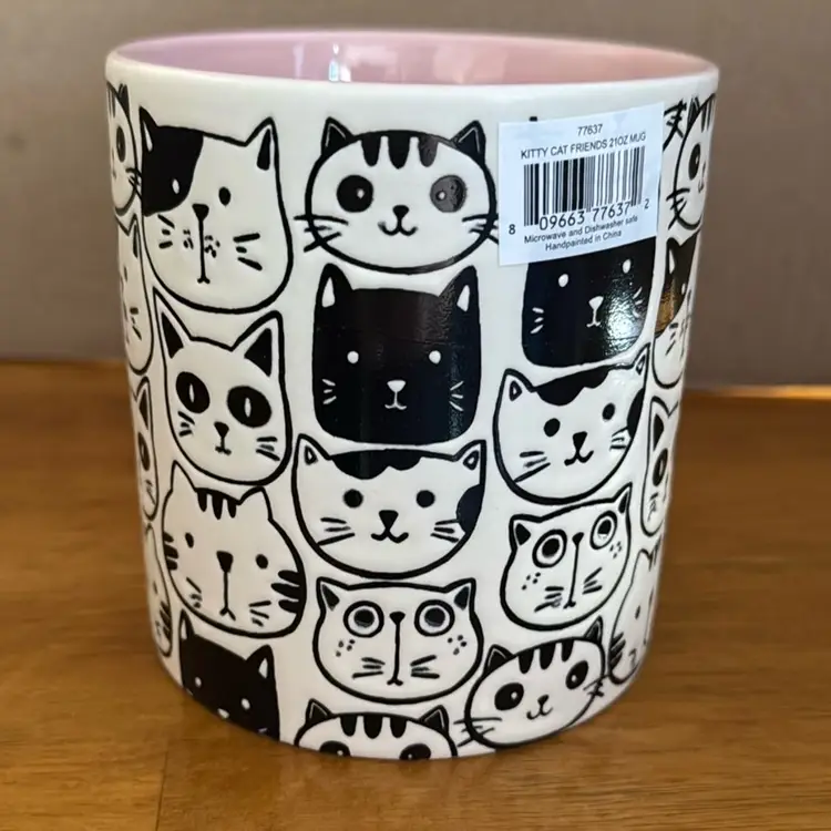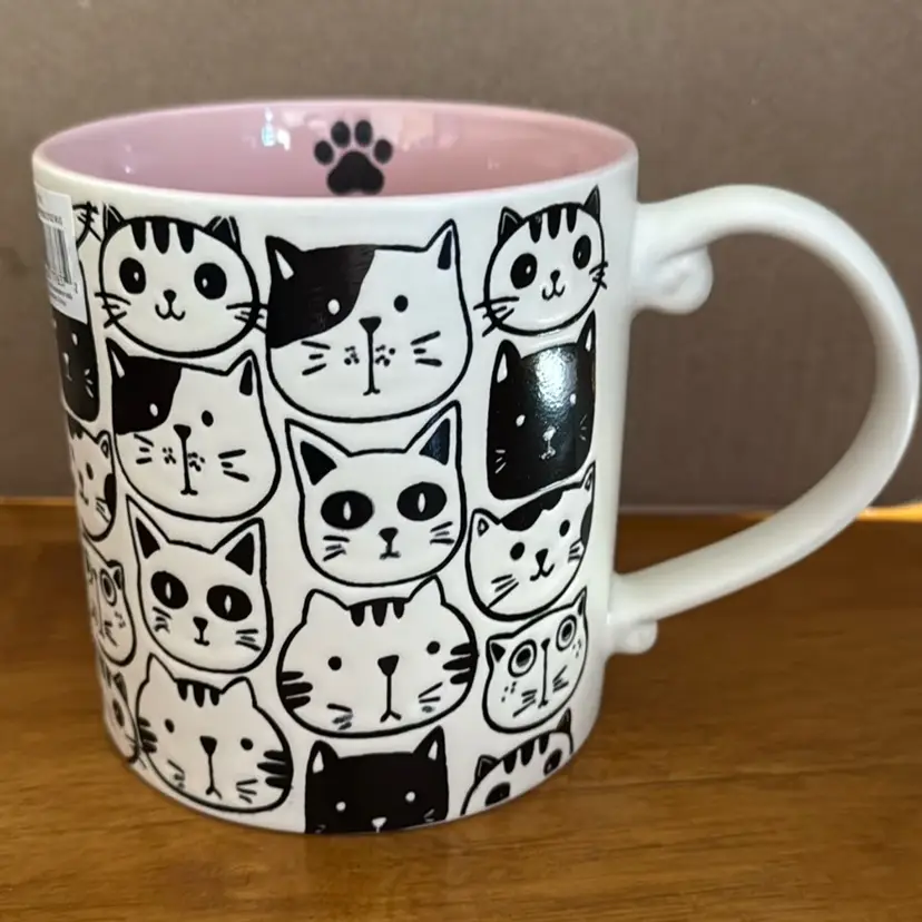 This is a very nice embossed Cat Faces ceramic mug. 22oz. Pink inside.