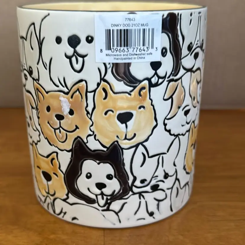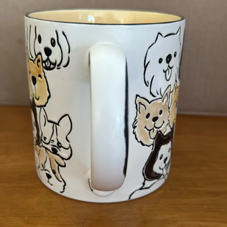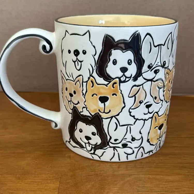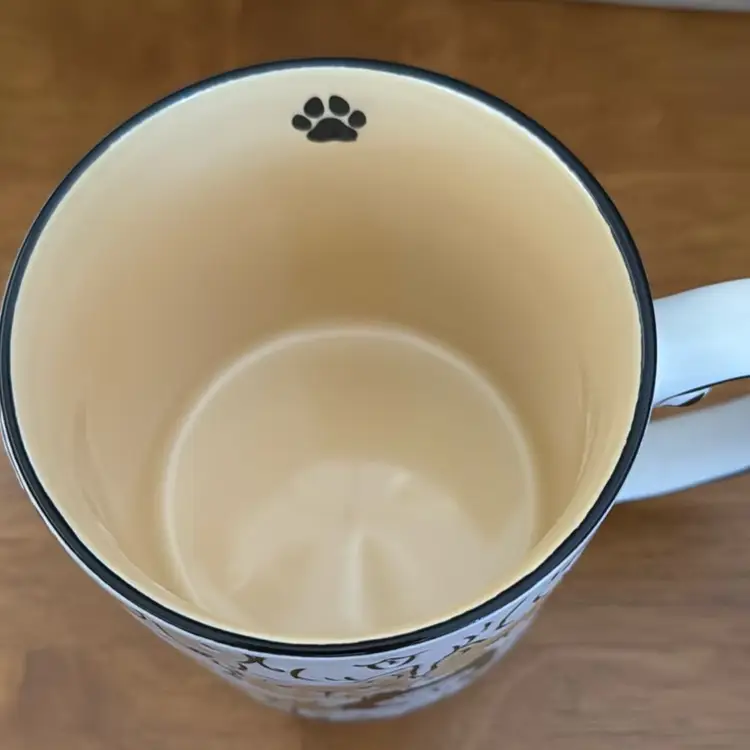 This is a very nice mug with embossed dogs. 22oz Yellow inside