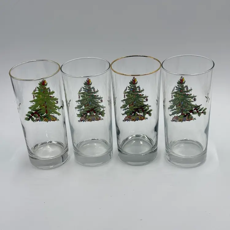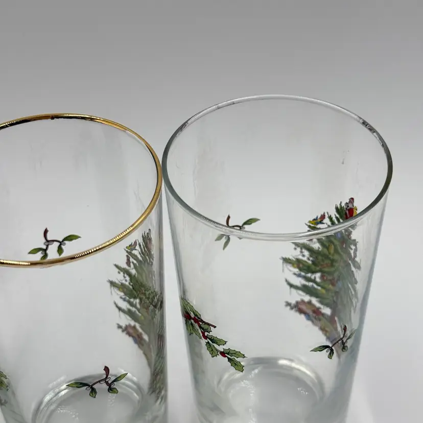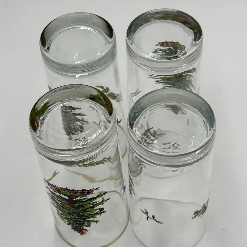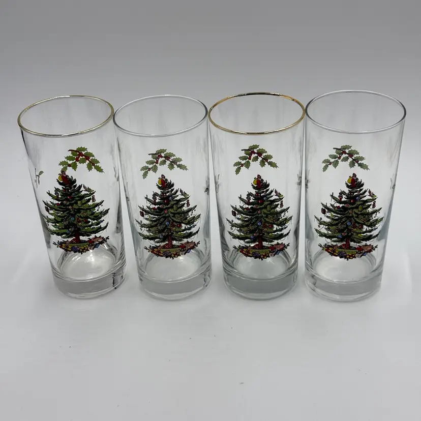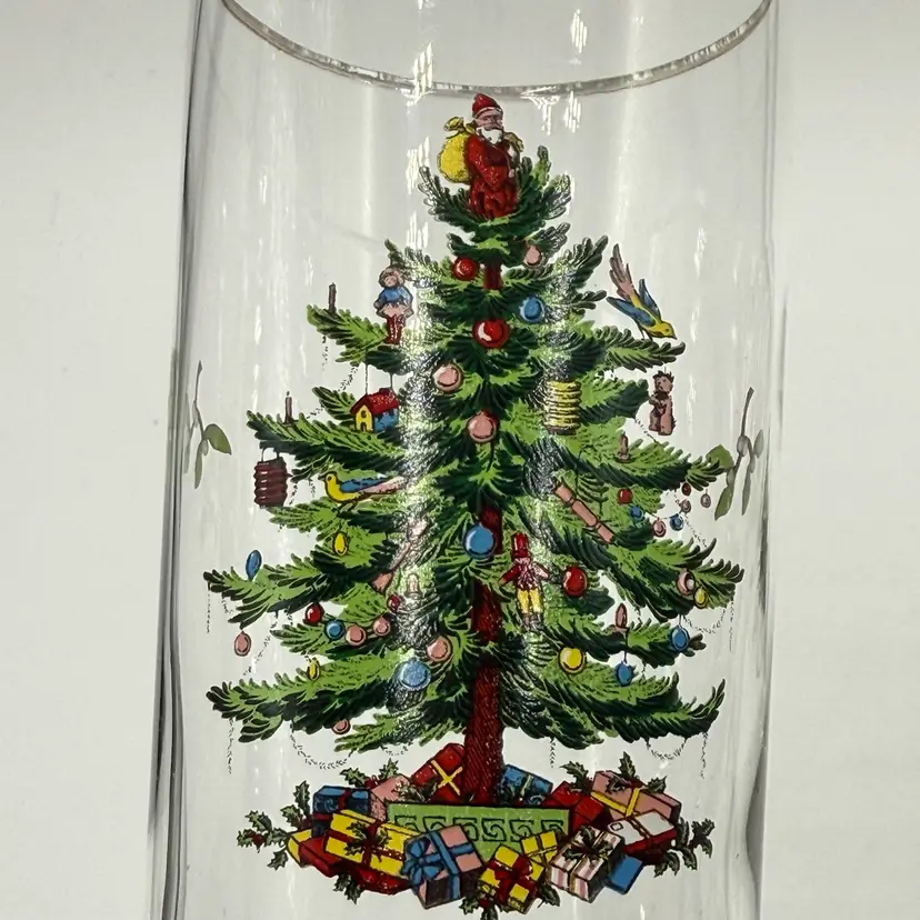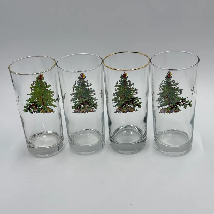 Spode Christmas Tree Santa Set Of Four Vintage Glass Highball Glasses