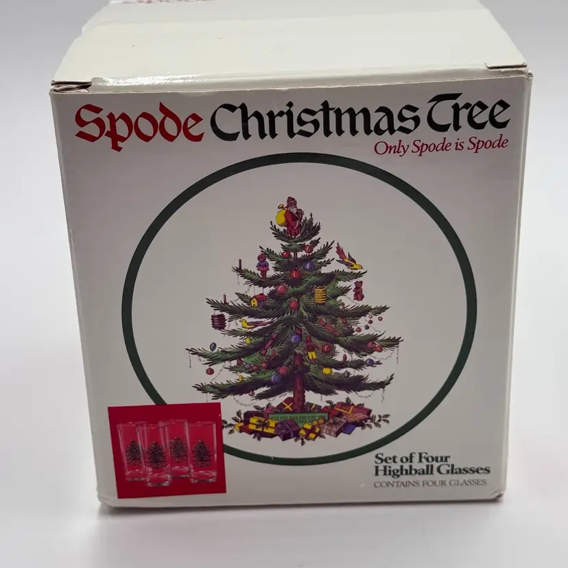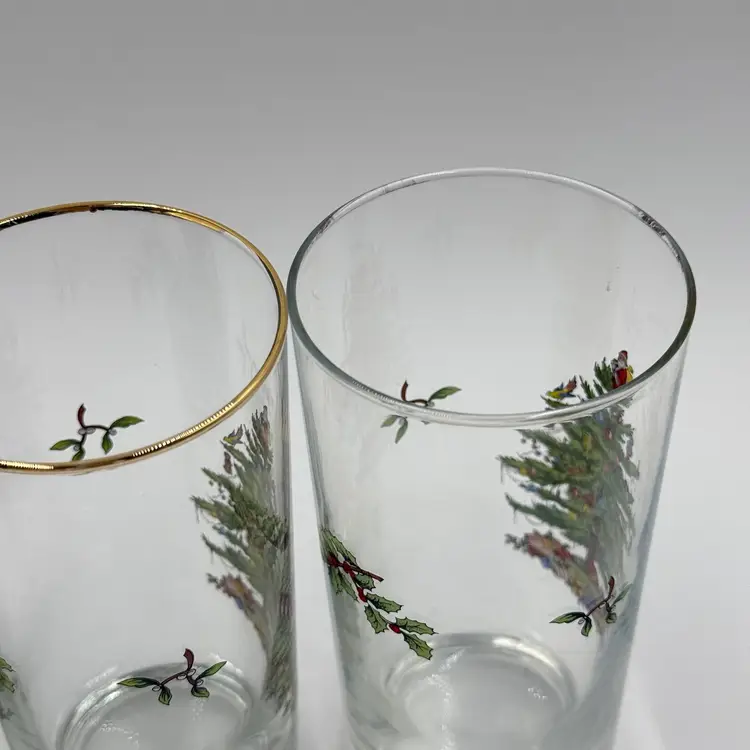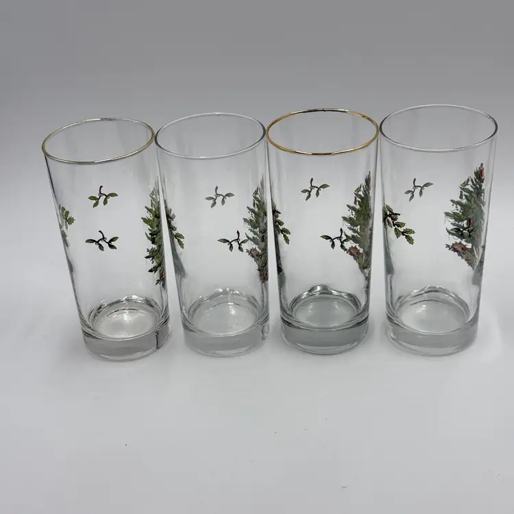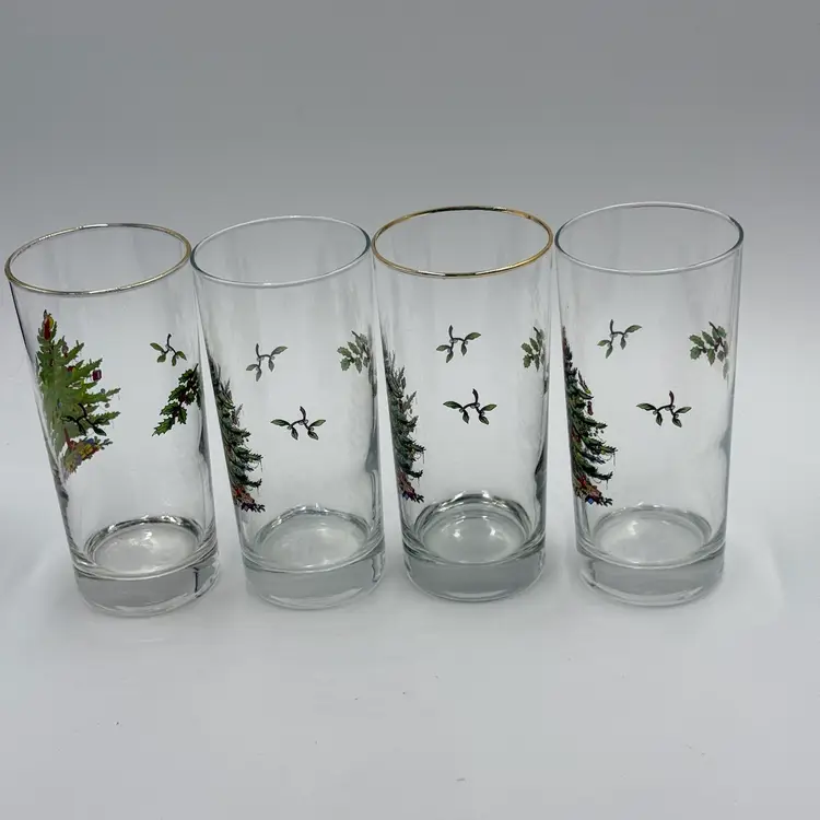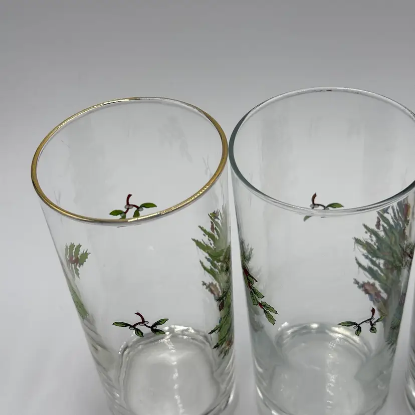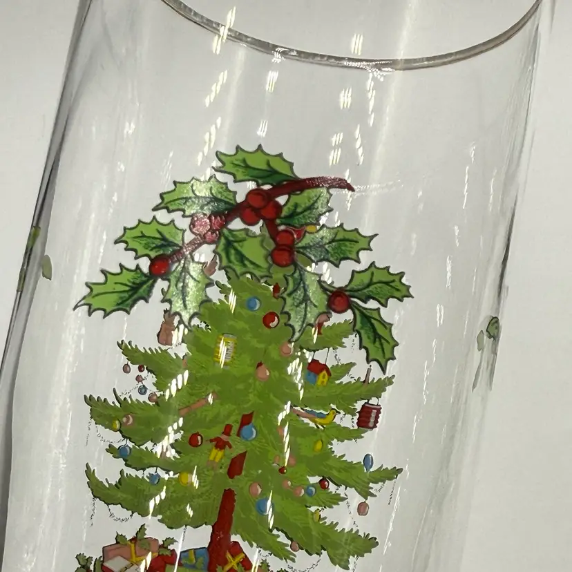 Spode Christmas Tree Santa Set Of Four Vintage Glass Highball Glasses